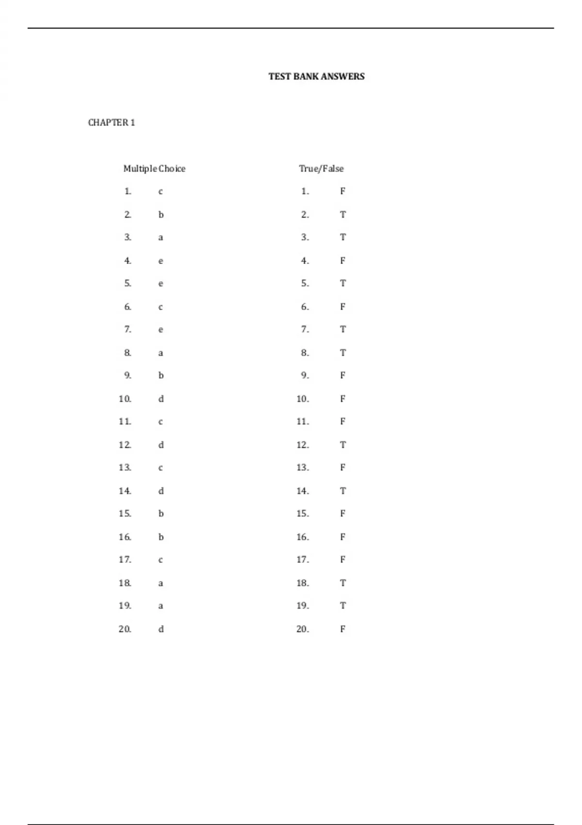 TEST BANK ANSWERS