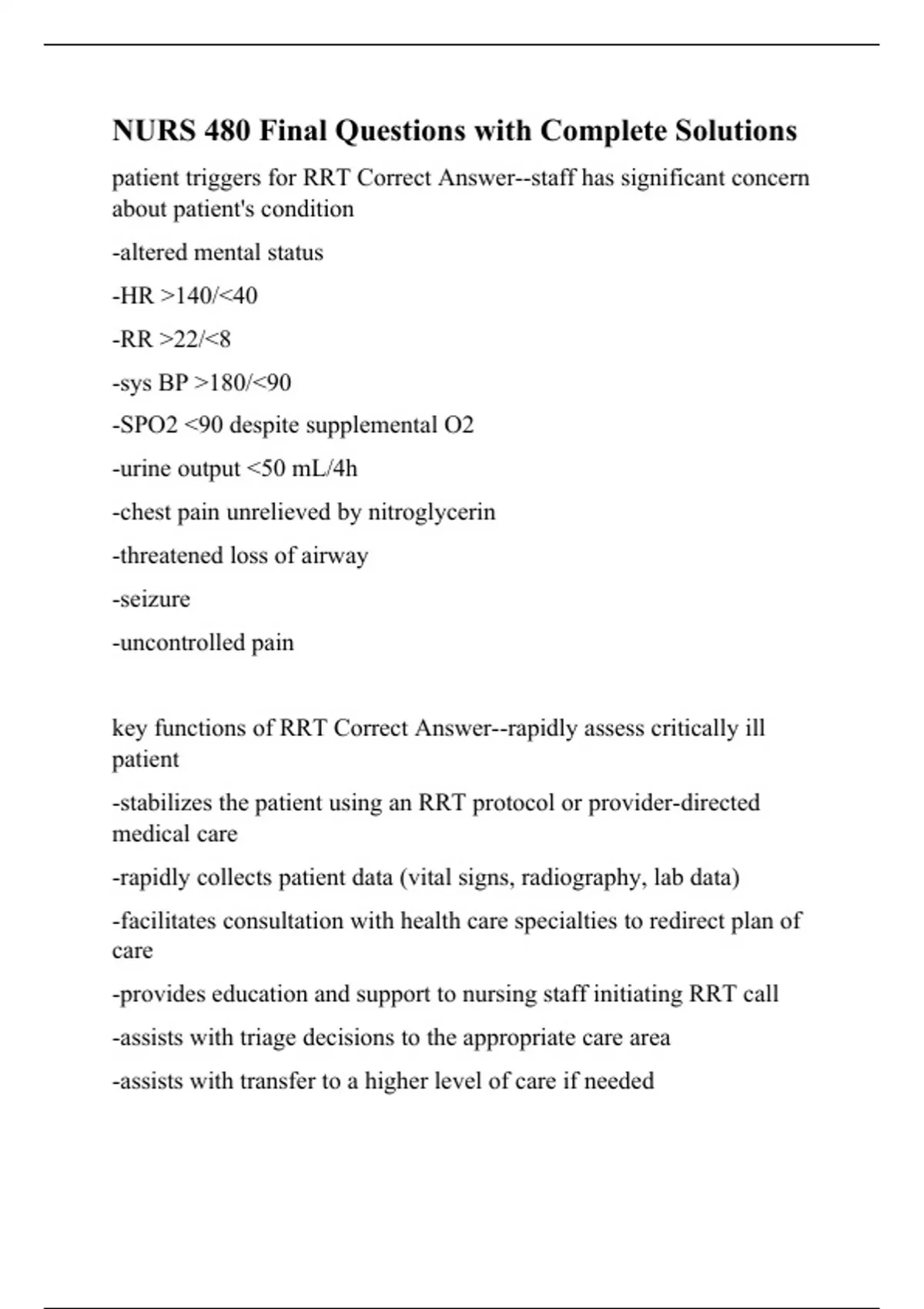 NURS 480 Final Questions with Complete Solutions