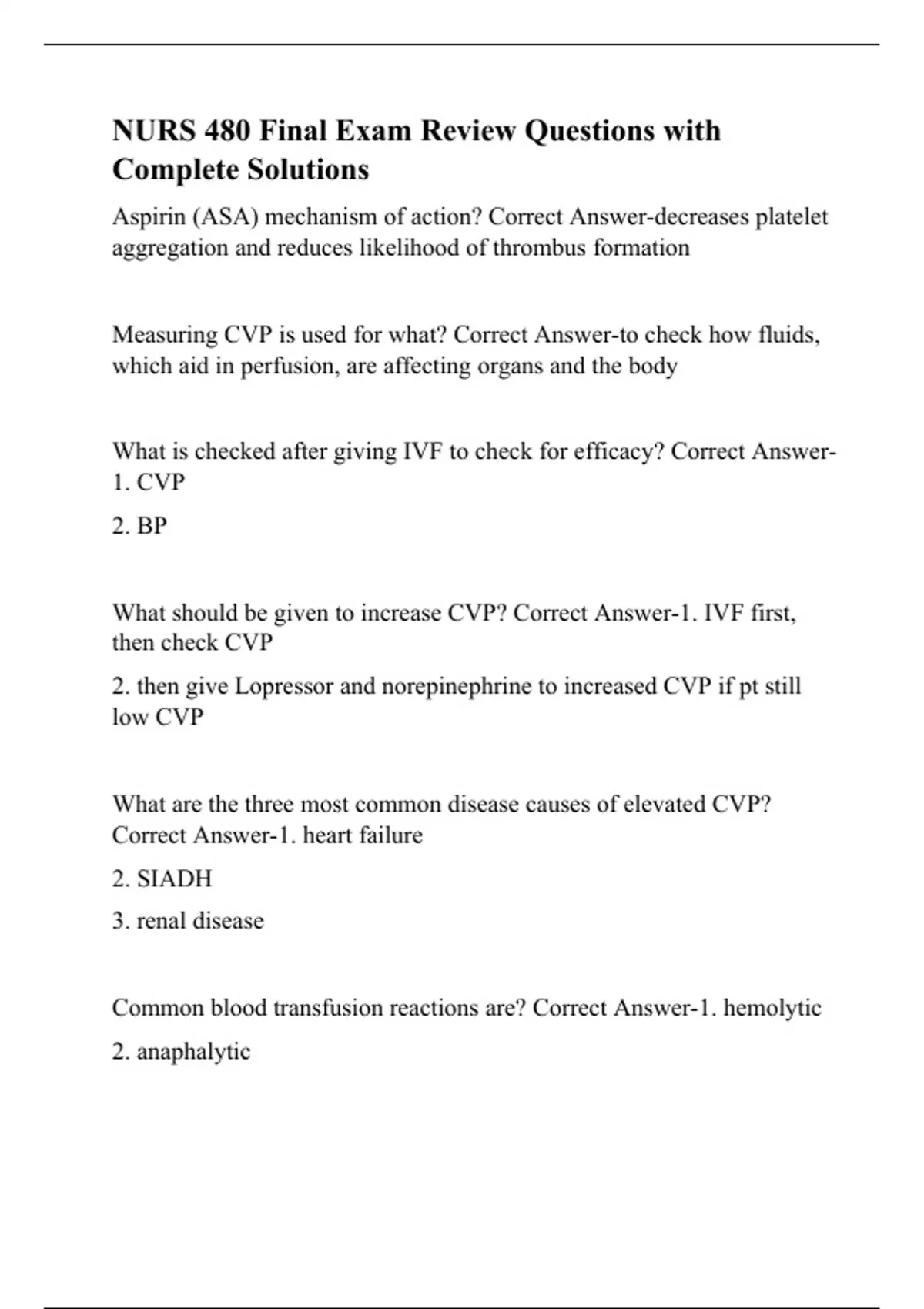 NURS 480 Final Exam Review Questions with Complete Solutions