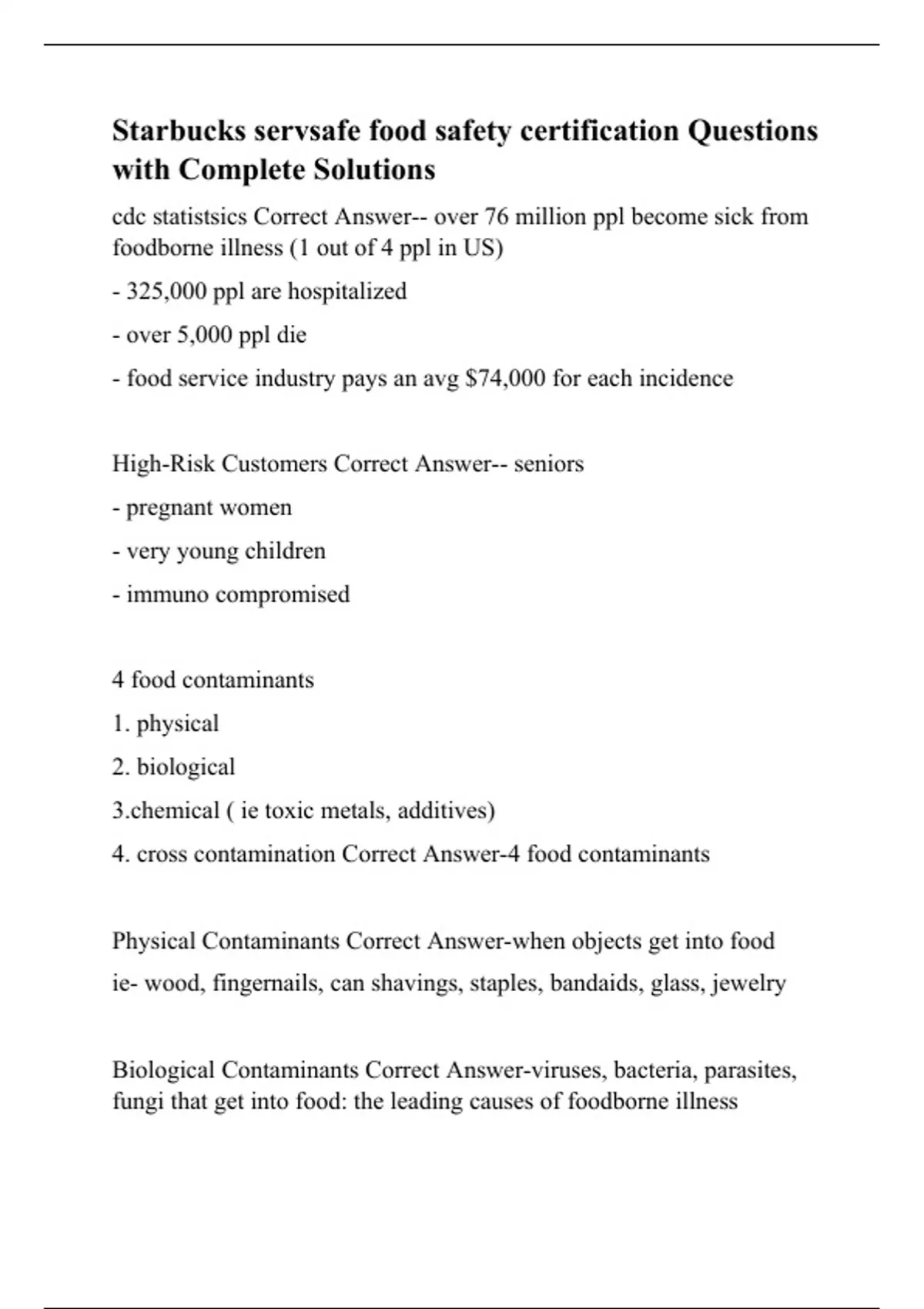Starbucks servsafe food safety certification Questions with Complete Solutions