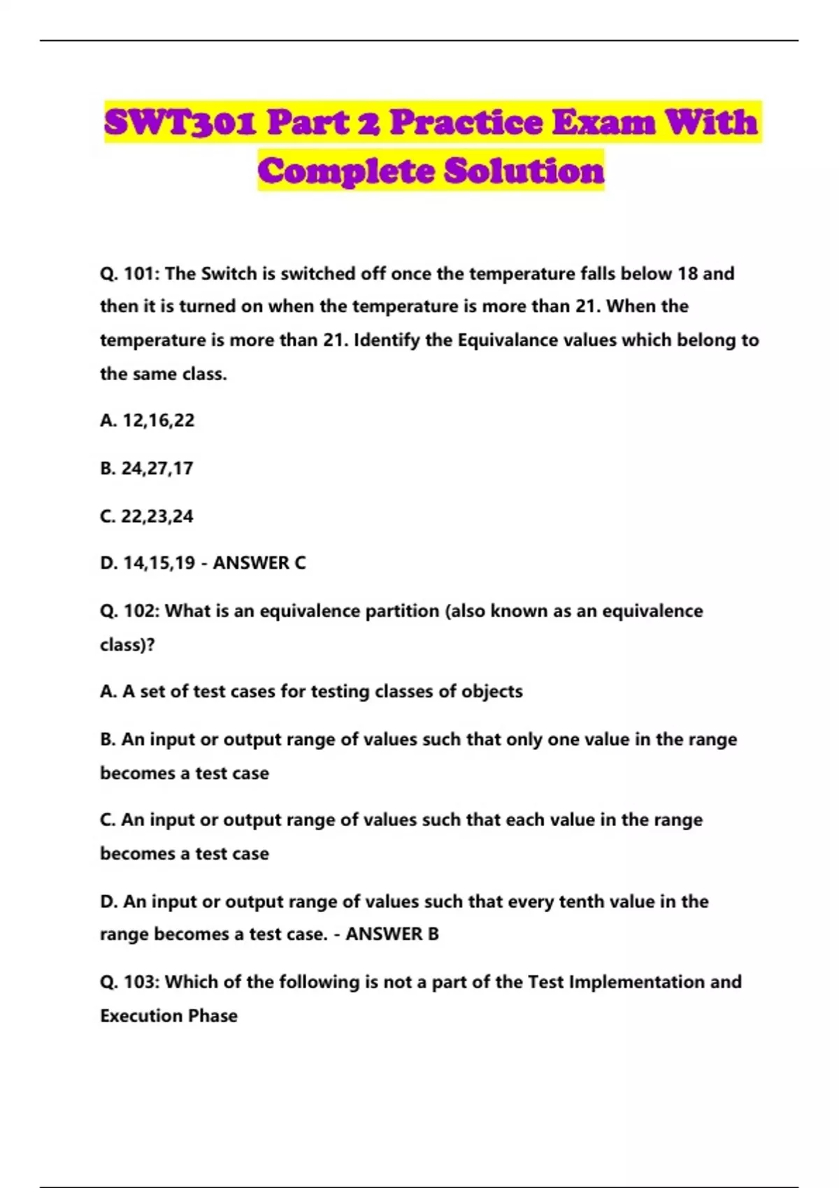 SWT301 Part 2 Practice Exam With Complete Solution...