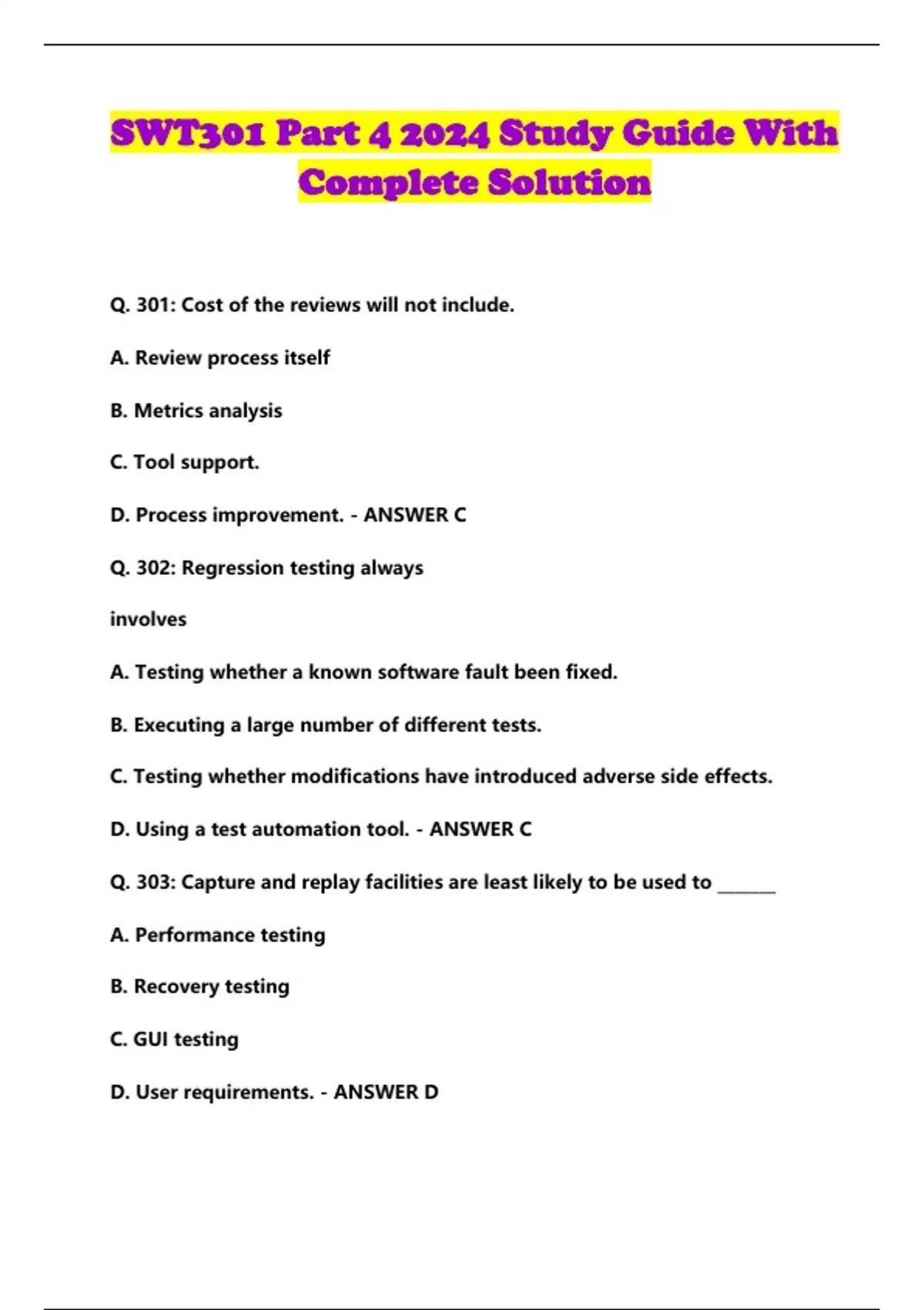 SWT301 Part 4 2024 Study Guide With Complete Solution...
