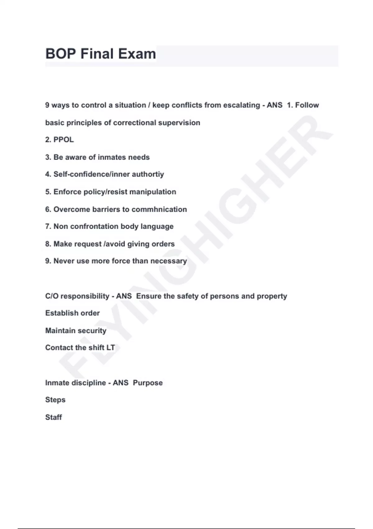 FLETC BOP Final Exam QUESTIONS & ANSWERS 2024 ( A+ GRADED 100% VERIFIED)