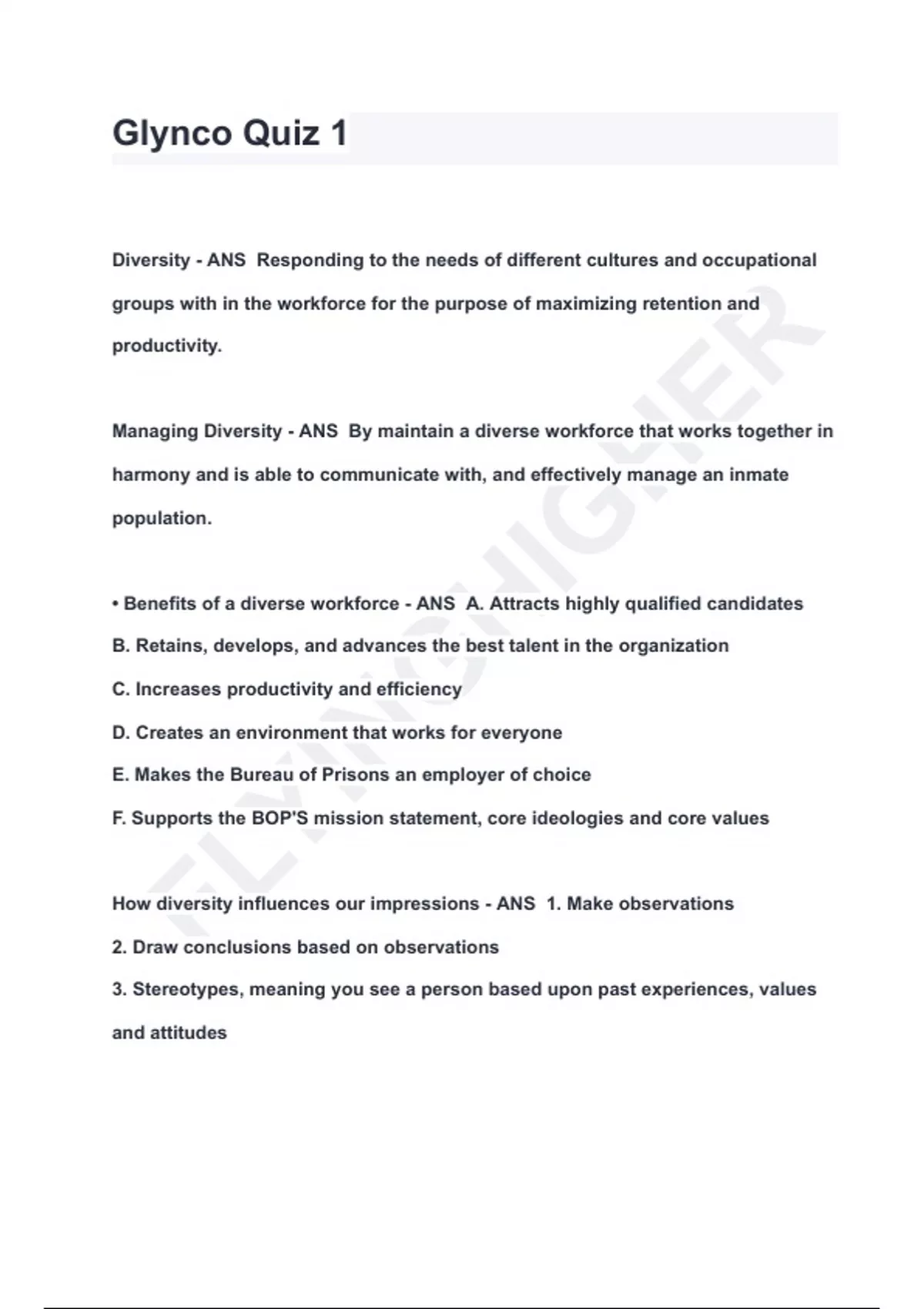 FLETC BOP Glynco Quiz 1 QUESTIONS & ANSWERS 2024 ( A+ GRADED 100% VERIFIED)