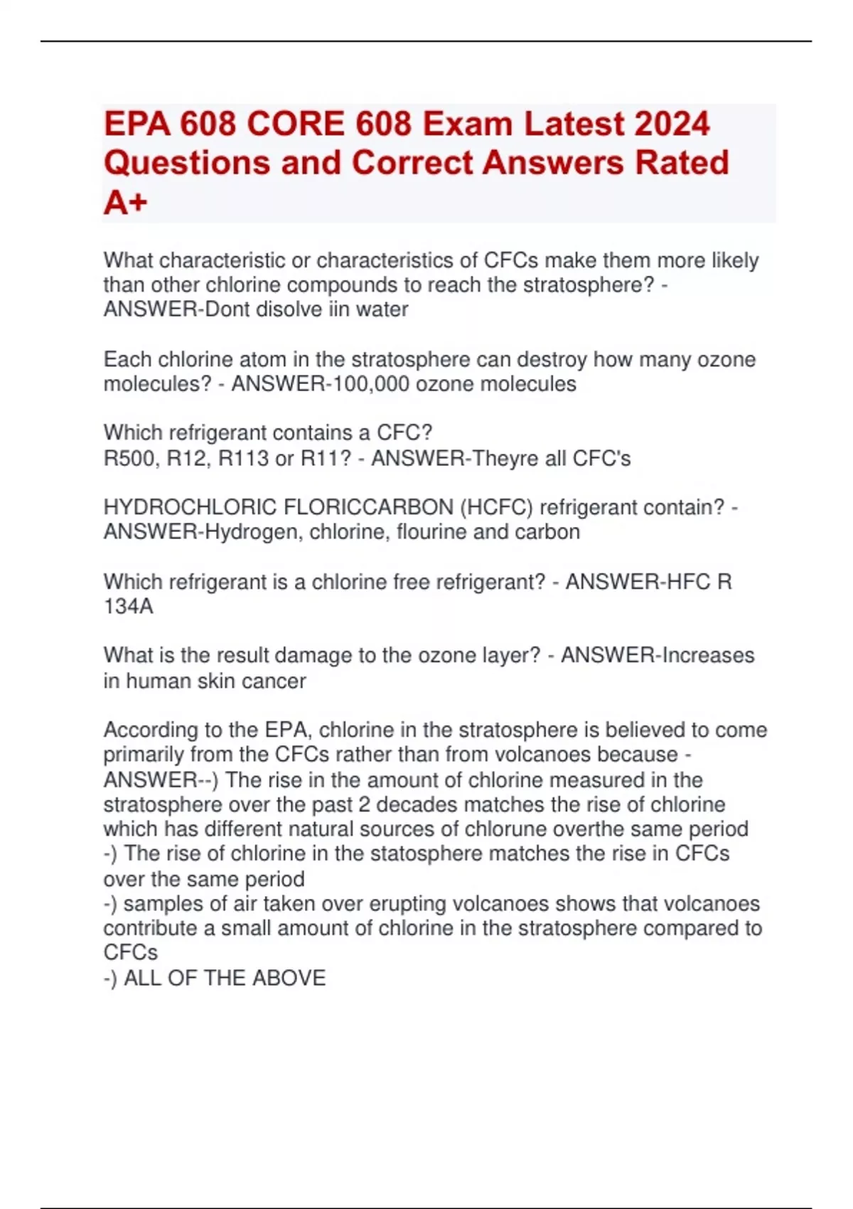 EPA 608 CORE 608 Exam Latest 2024 Questions and Correct Answers Rated A+