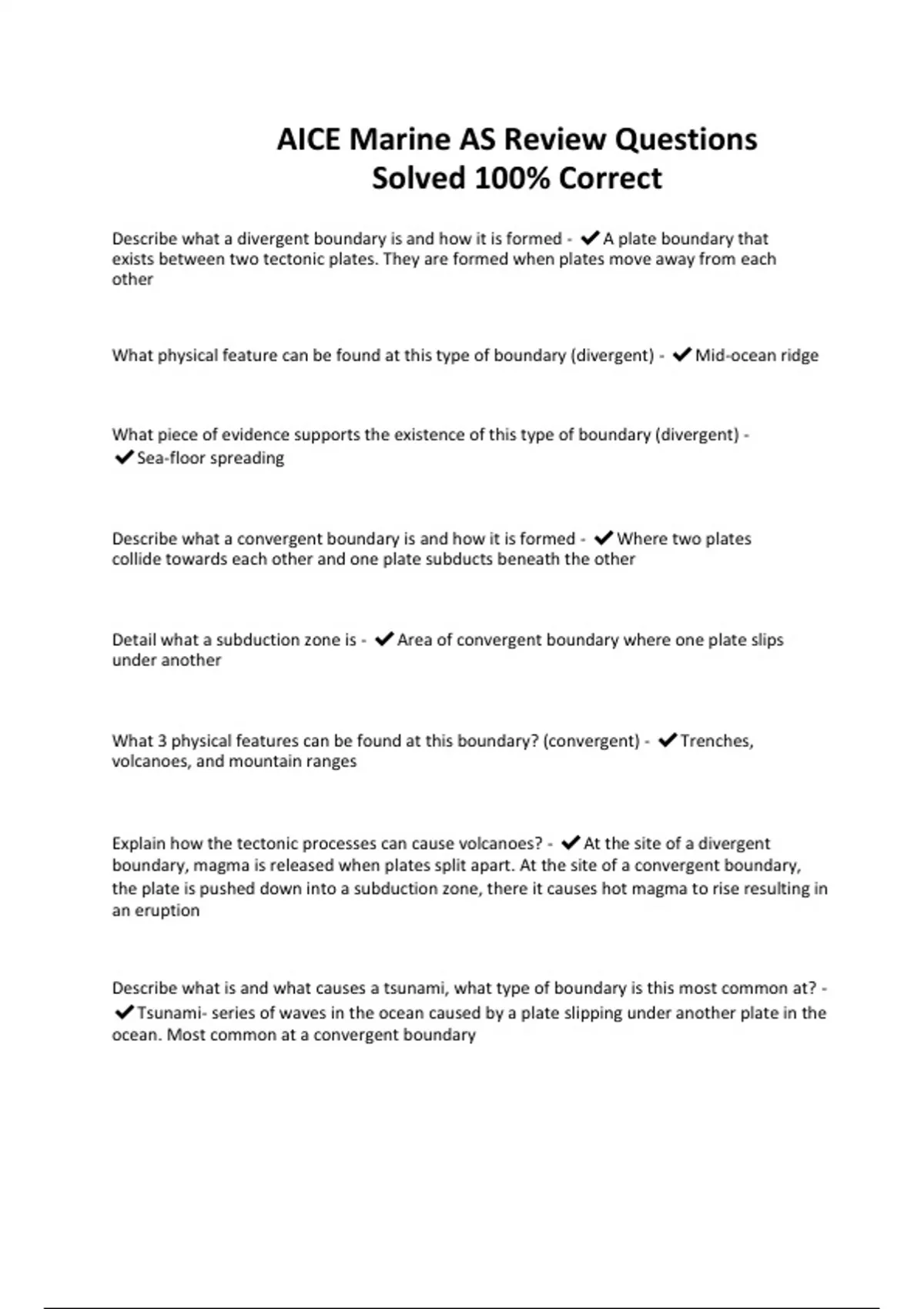 Describe what a divergent boundary is and how it is formed - A plate boundary that exists between two tectonic plates. They are formed when plates move away from each other What physical feature can be found at this type of boundary (divergent) - Mid-ocean ridge What piece of evidence supports the existence of this type of boundary (divergent) - Sea-floor spreading