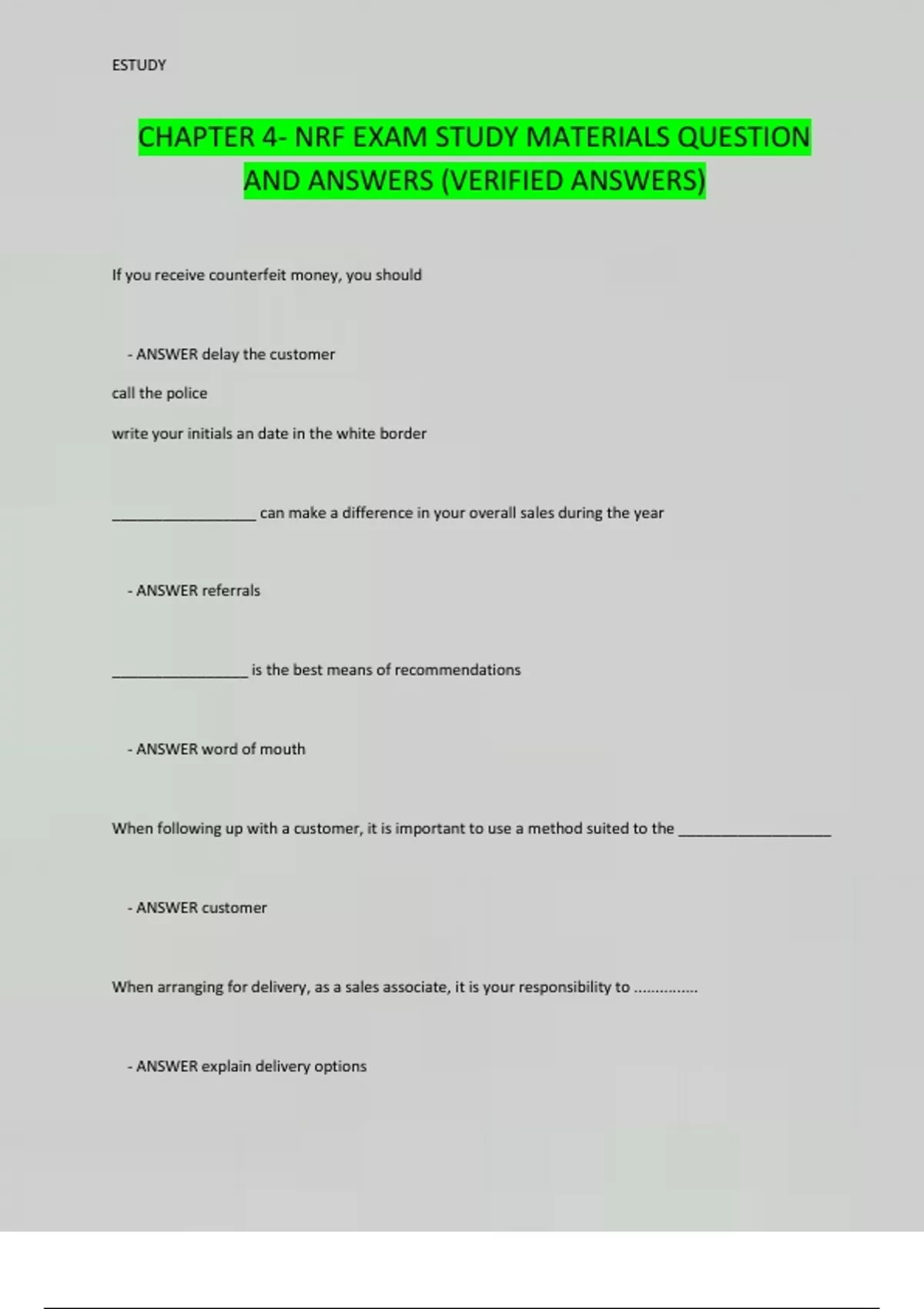 CHAPTER 4- NRF EXAM STUDY MATERIALS QUESTION AND ANSWERS (VERIFIED ANSWERS)