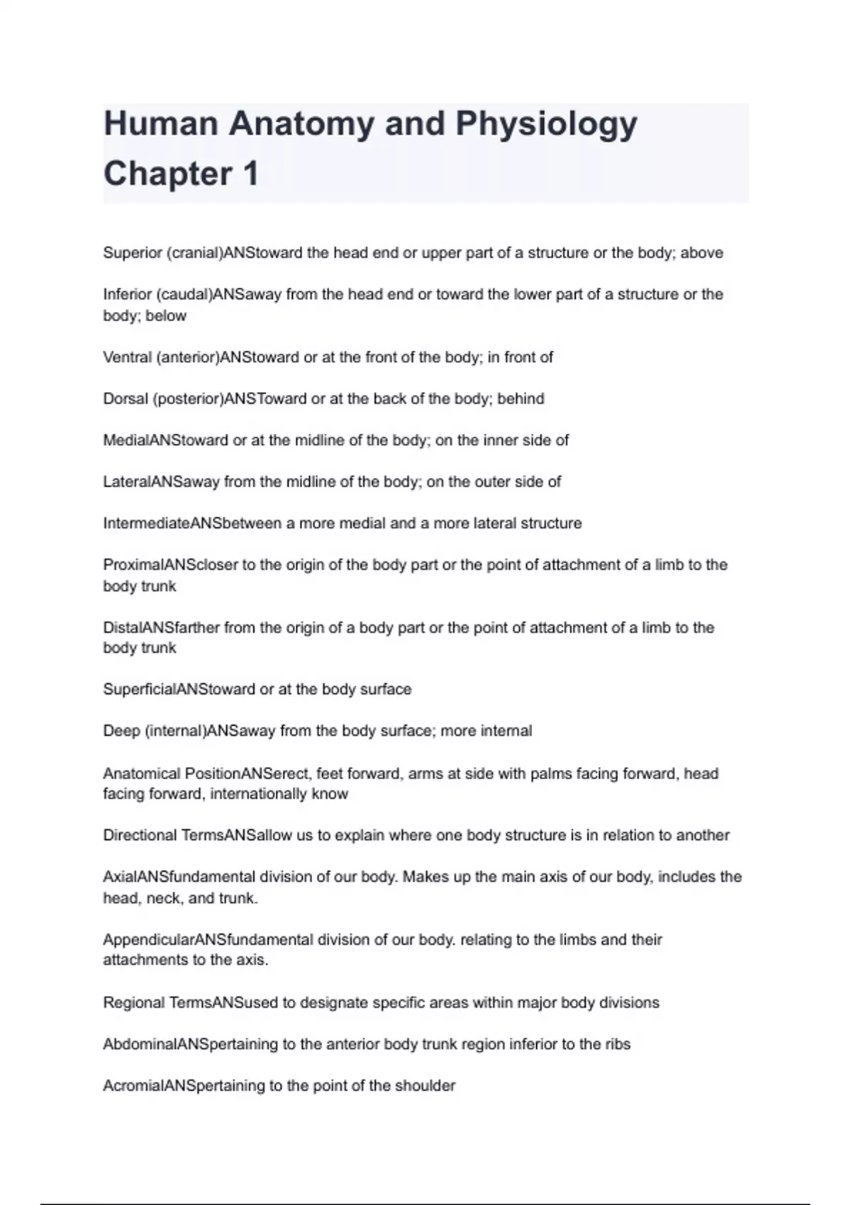 Human Anatomy and Physiology Chapter 1