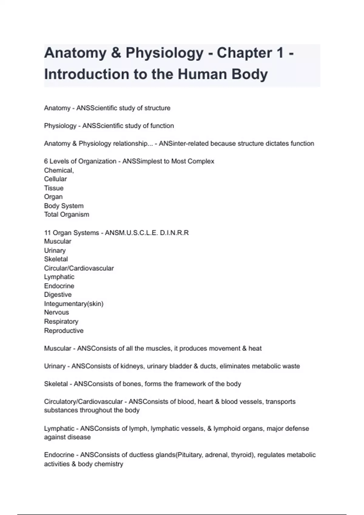Anatomy & Physiology - Chapter 1 - Introduction to the Human Body