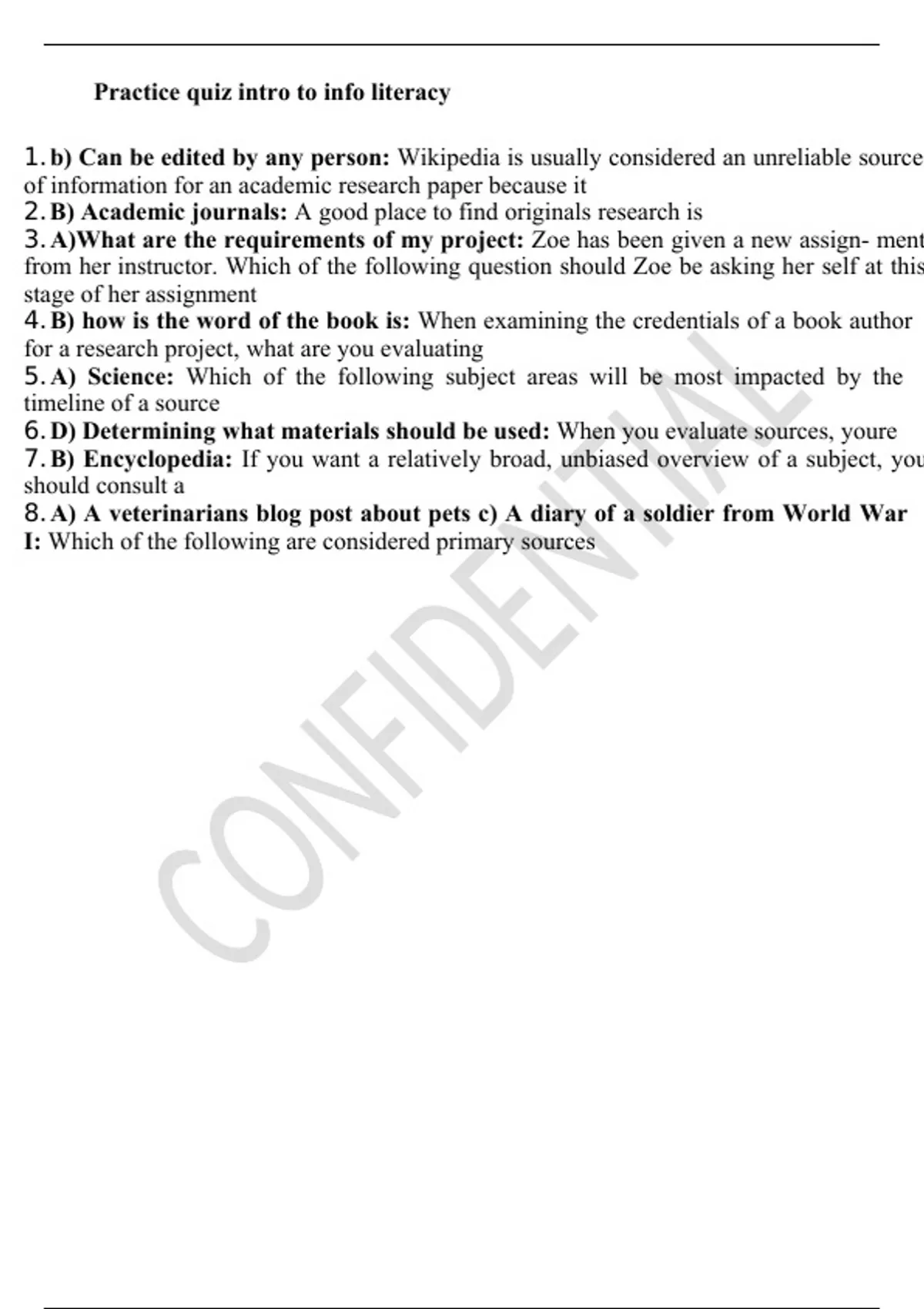 1. b) Can be edited by any person: Wikipedia is usually considered an unreliable source