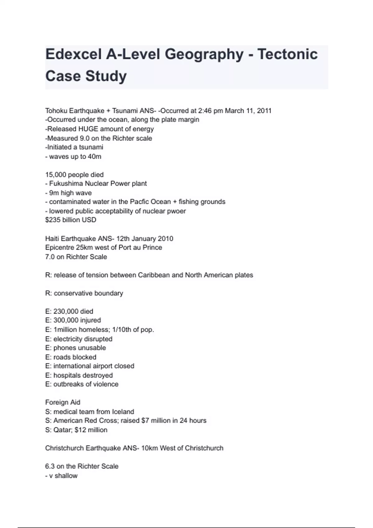 Edexcel A-Level Geography - Tectonic Case Study
