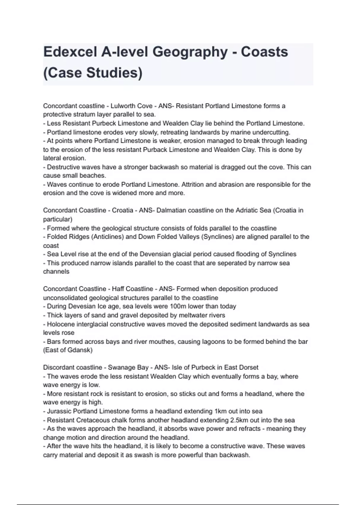 Edexcel A-level Geography - Coasts (Case Studies)