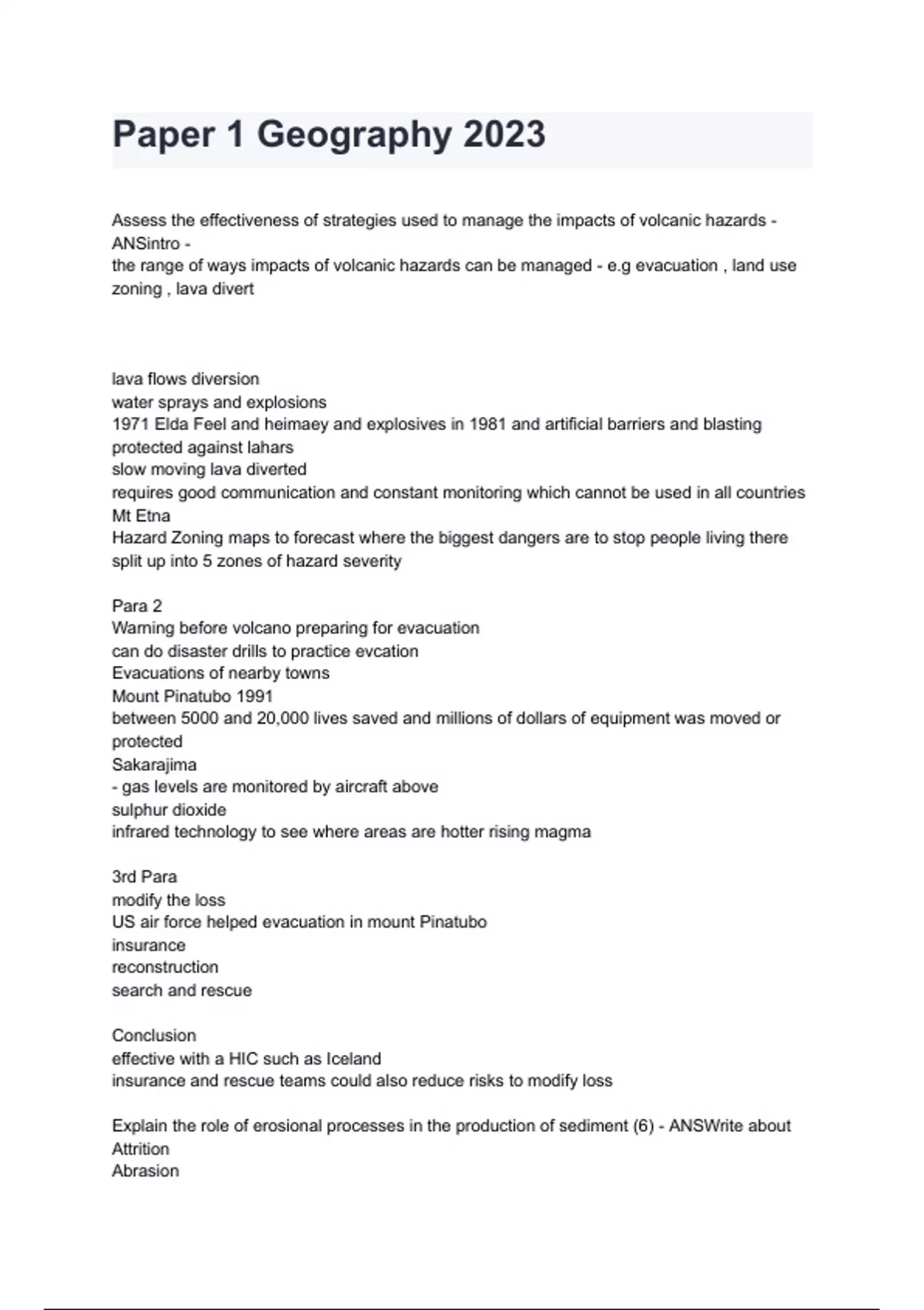 Paper 1 Geography 2023