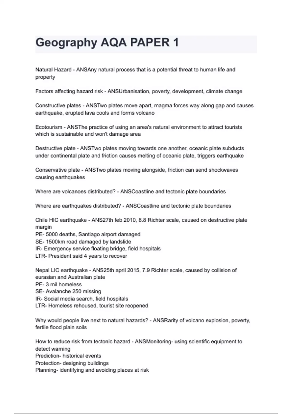 Geography AQA PAPER 1