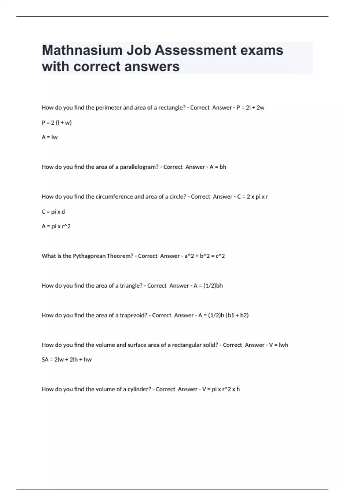 How do you find the area of a triangle? - Correct Answer - A = (1/2)bh