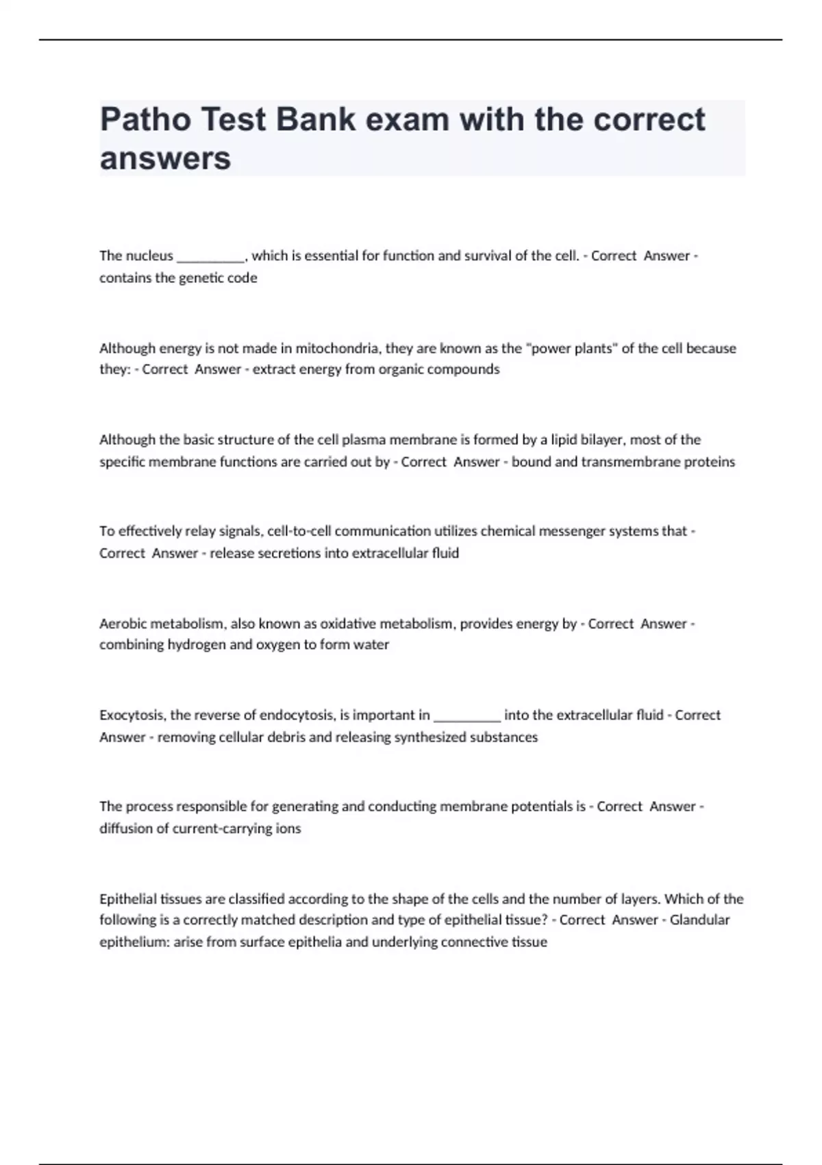 Patho Test Bank exam with the correct answers