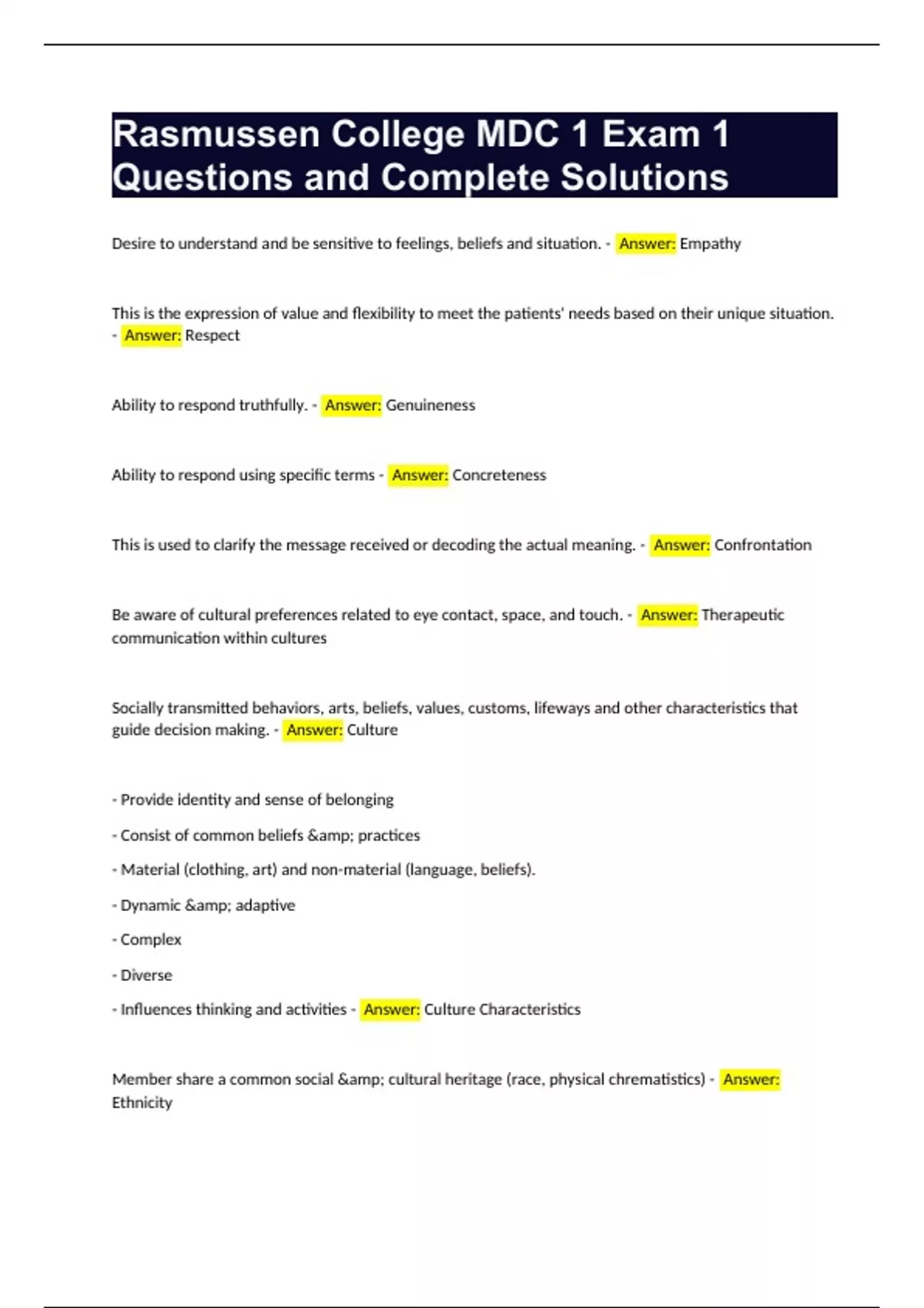 Rasmussen College MDC 1 Exam 1 Questions and Complete Solutions