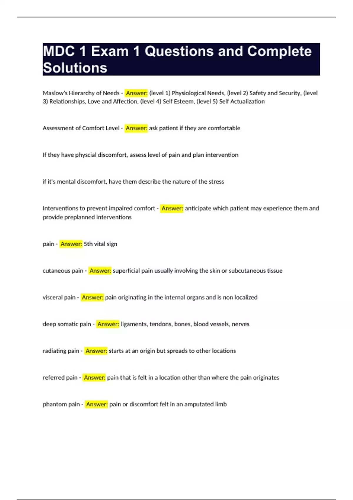 mdc 1 exam 1 questions and complete solutions
