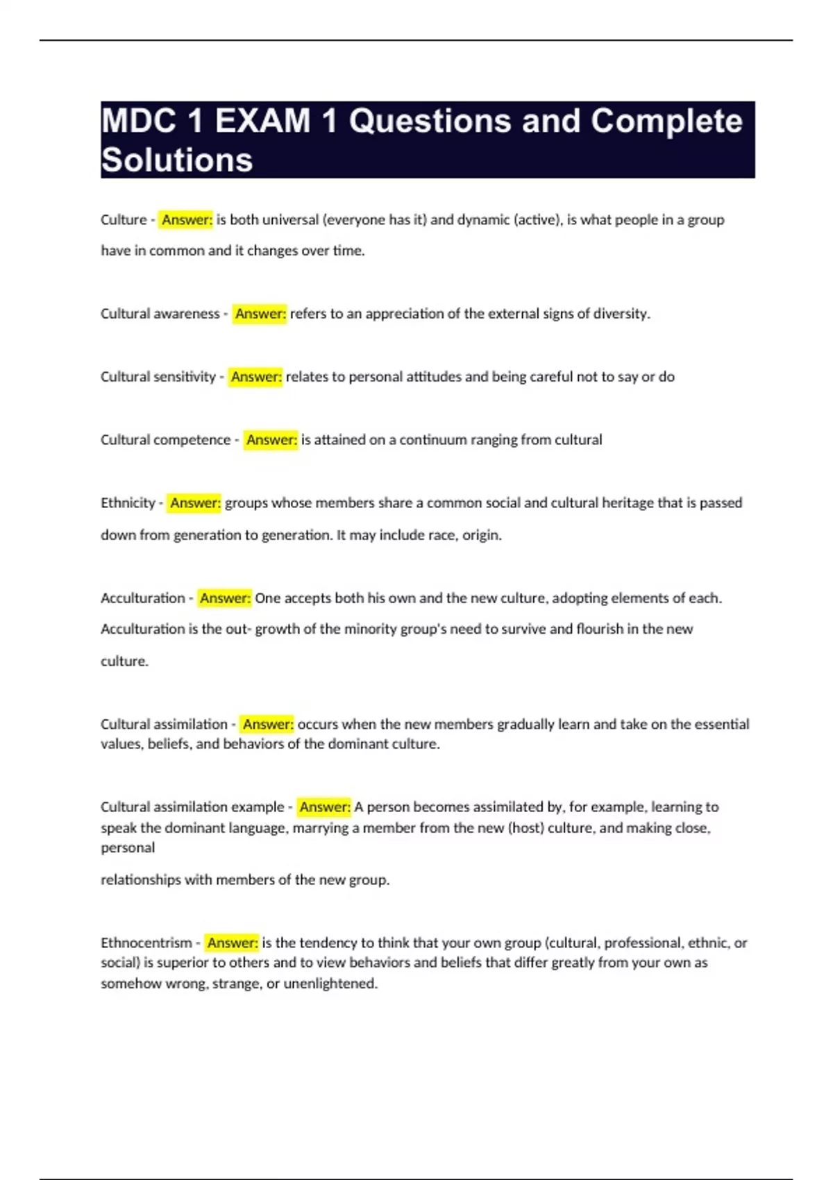 MDC 1 EXAM 1 Questions and Complete Rationales