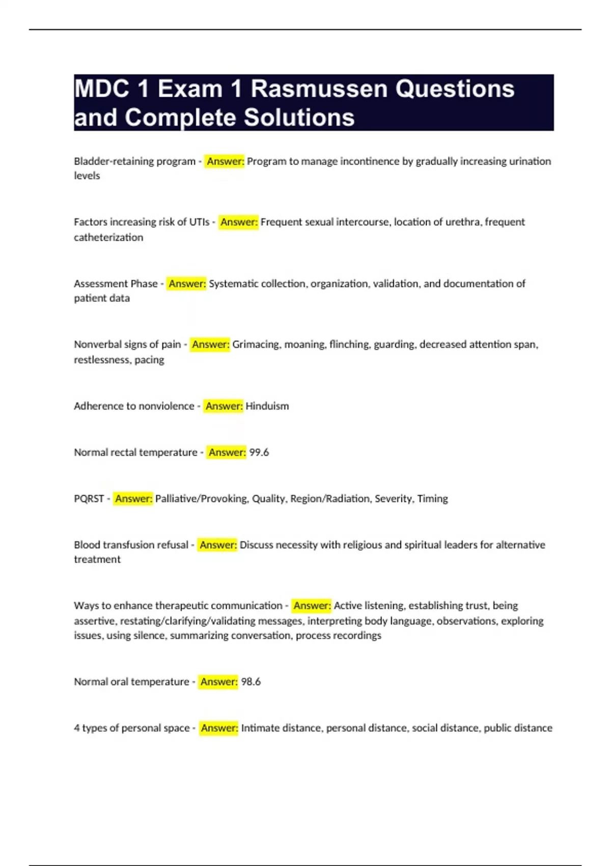 MDC 1 Exam 1 Rasmussen Questions and Complete Solutions