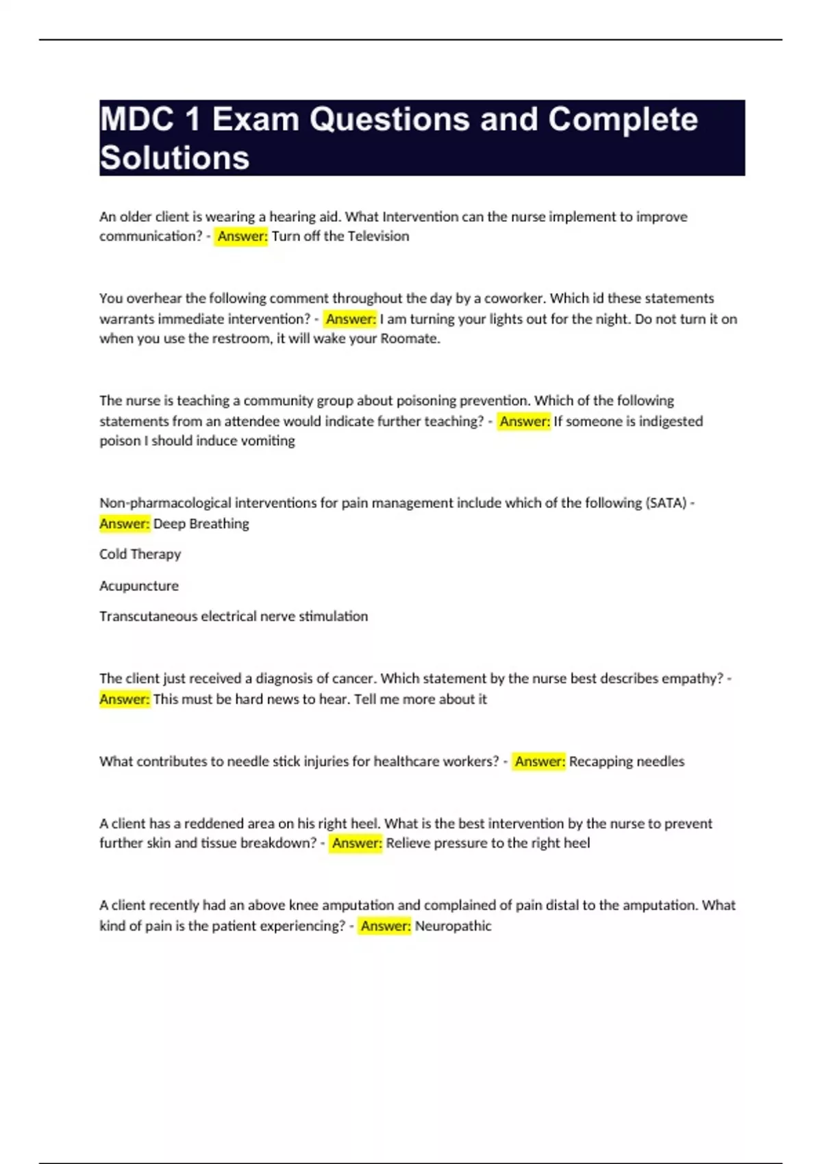 MDC 1 Exam Questions and Complete Solutions