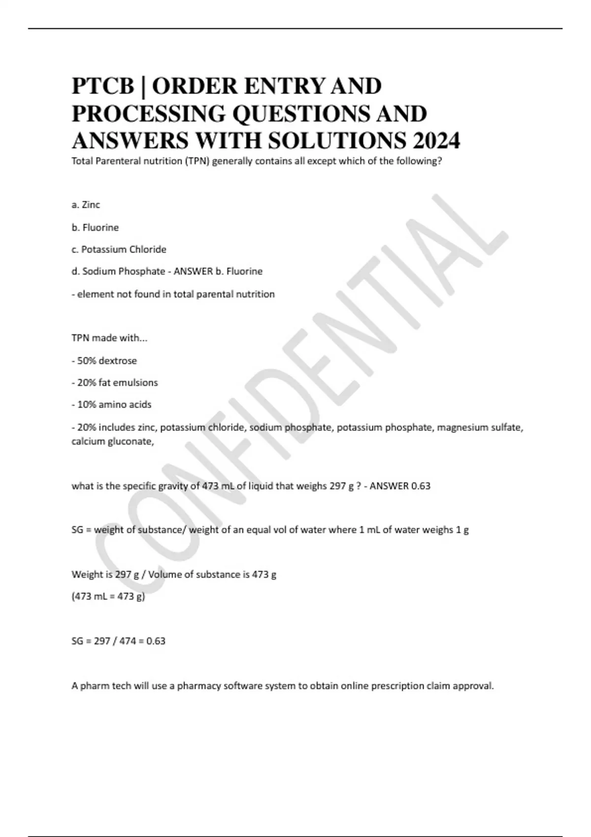 PTCB | ORDER ENTRY AND PROCESSING QUESTIONS AND ANSWERS WITH SOLUTIONS 2024