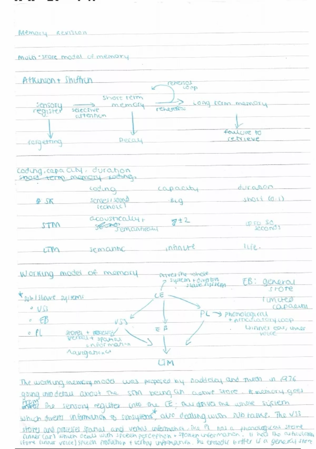 Many notes and mind maps on memory, AQA psychology. Helped me with my recent exams. Great to print off and put on walls.