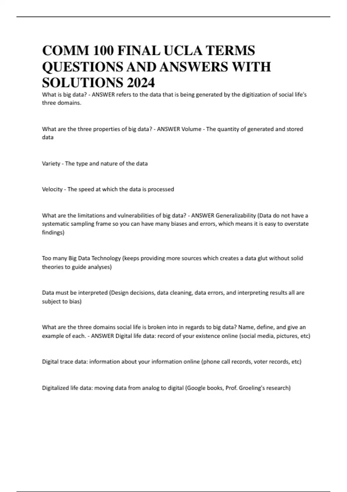 COMM 100 FINAL UCLA TERMS QUESTIONS AND ANSWERS WITH SOLUTIONS 2024