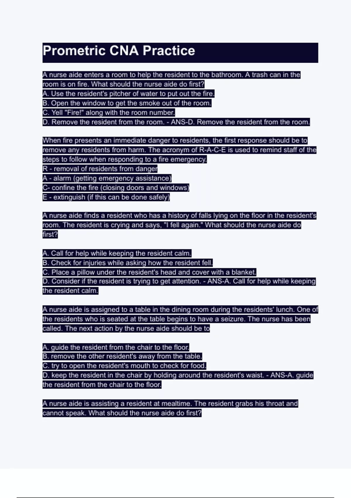Prometric CNA Practice.