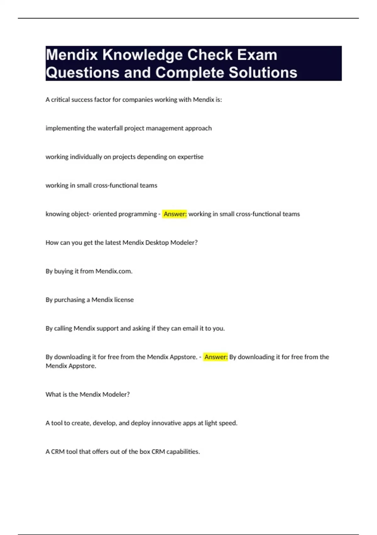 Mendix Knowledge Check Exam Questions and Complete Solutions