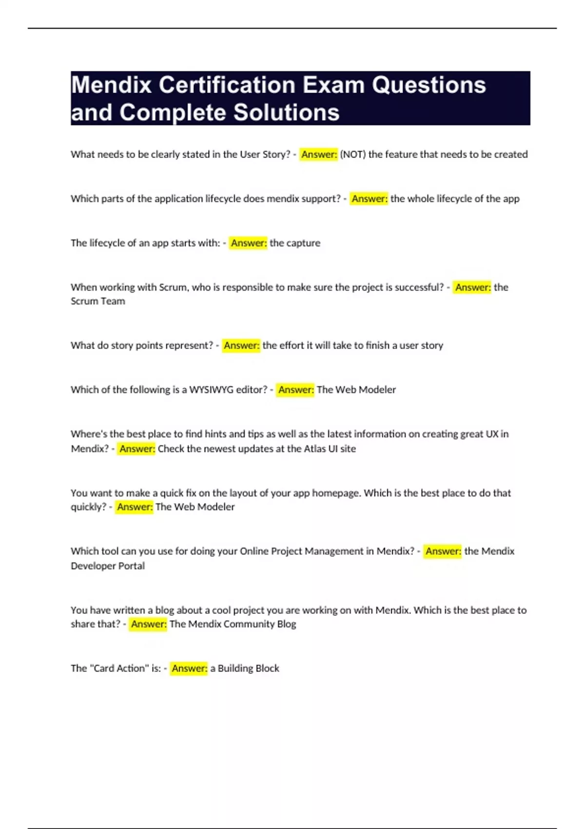 Mendix Certification Exam Questions and Correct Answers.