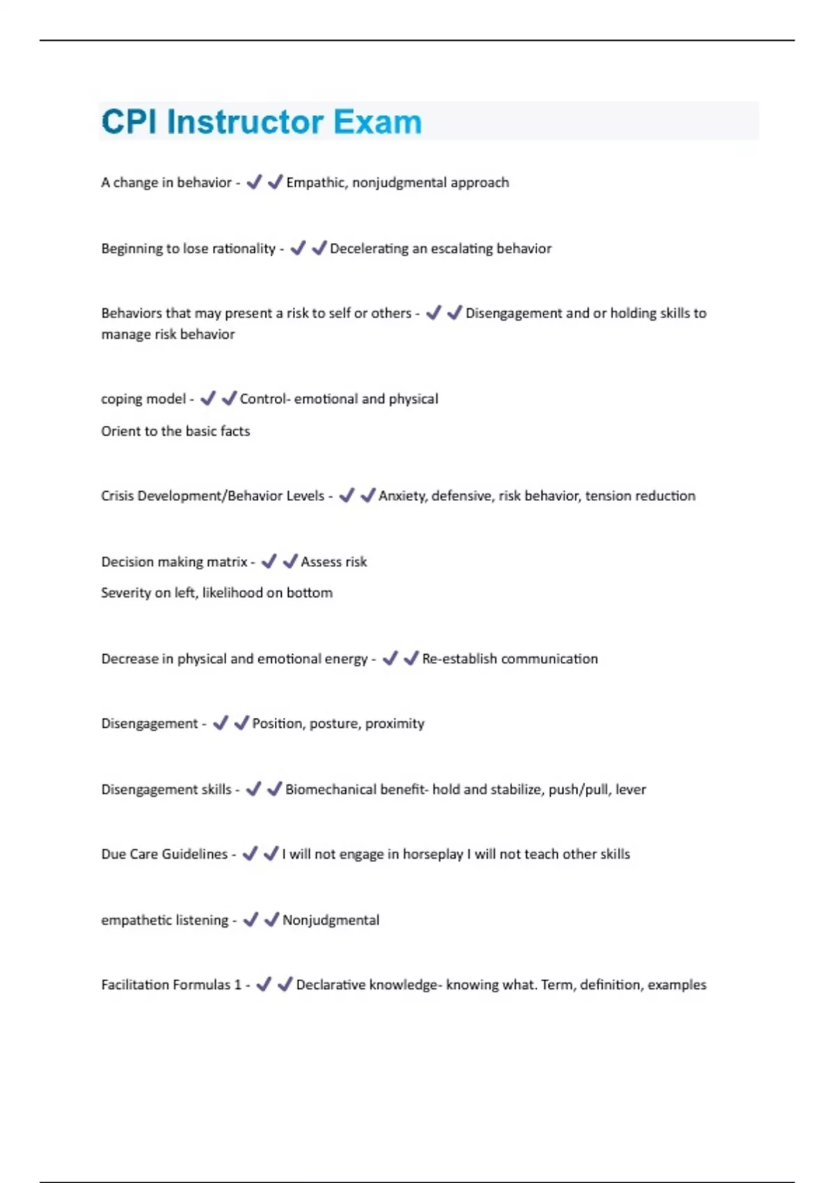 CPI Instructor Exam Questions & Answers Already Passed!!