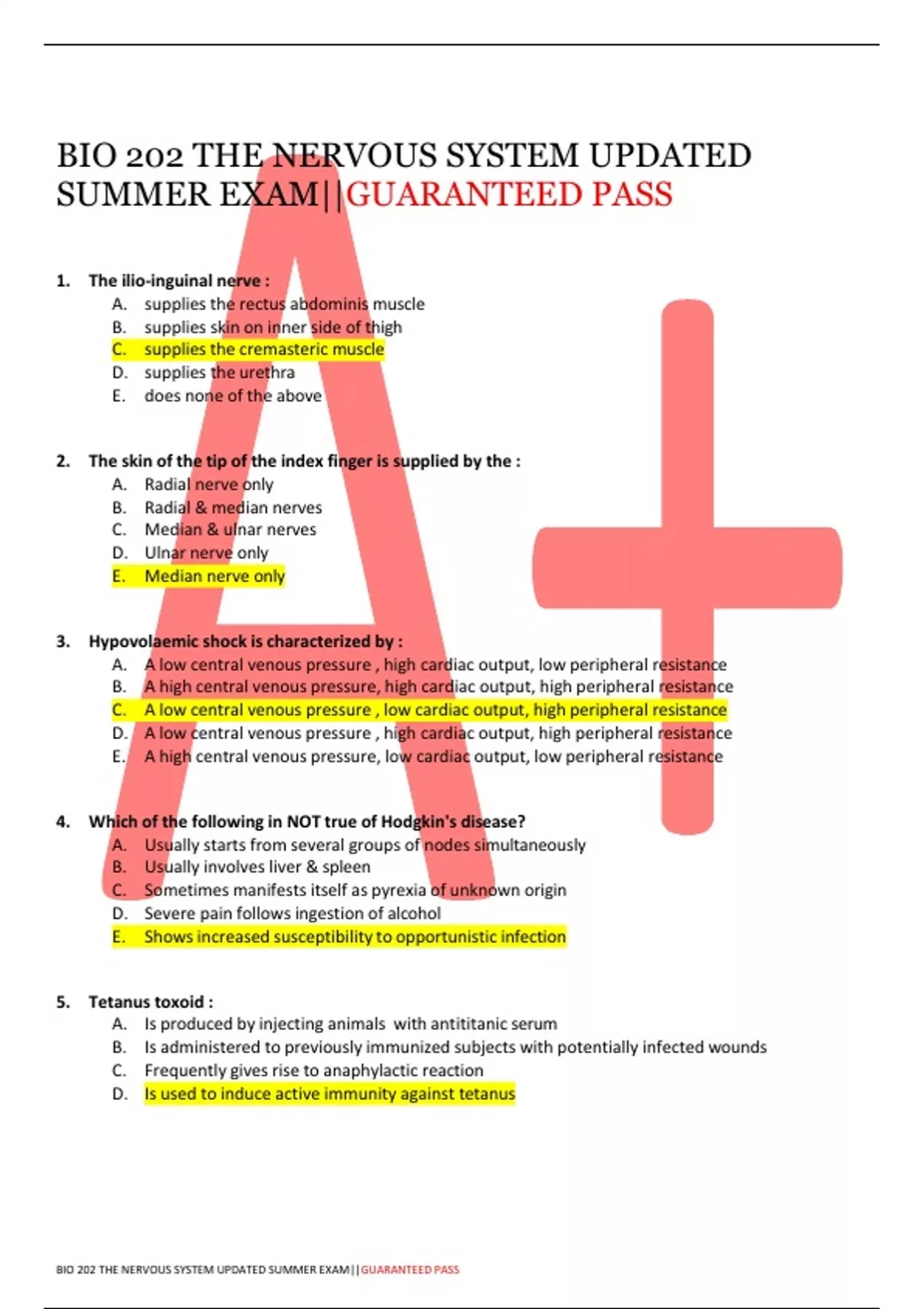 BIO 202 THE NERVOUS SYSTEM UPDATED SUMMER EXAM||GUARANTEED PASS