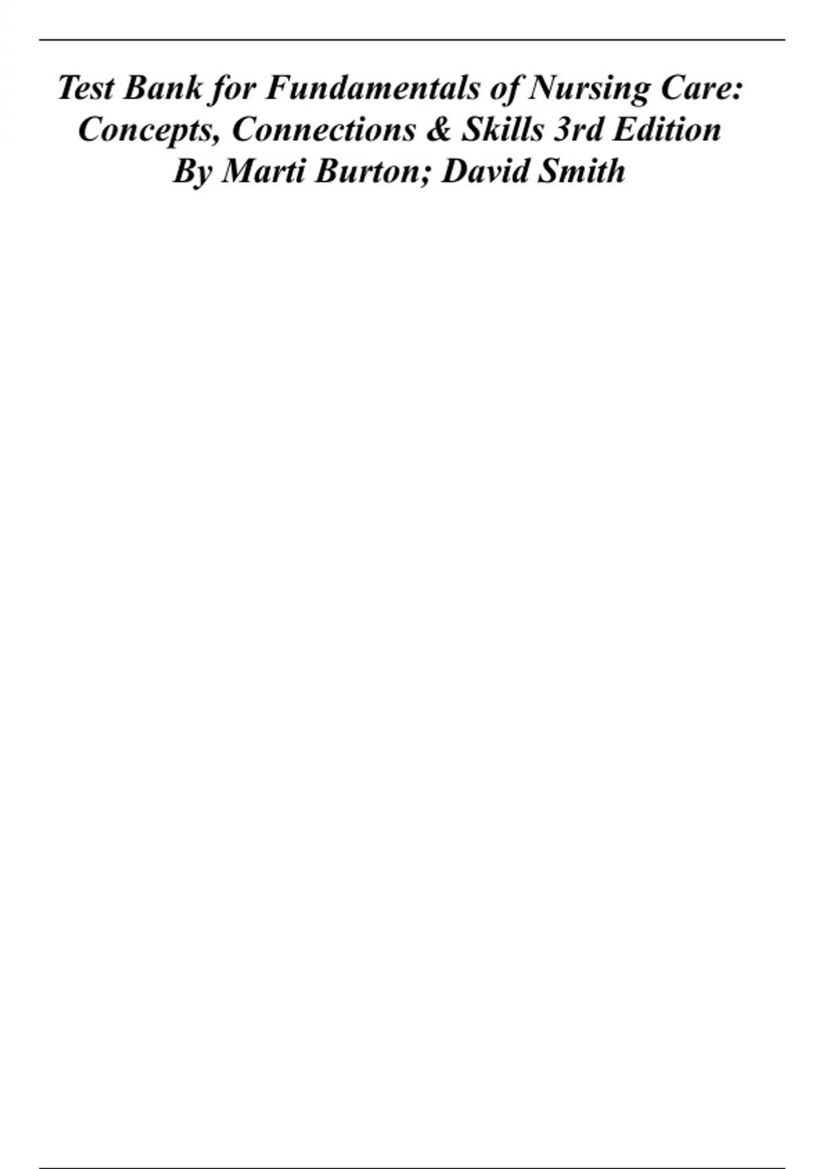 ,Fundamentals of Nursing Care: Concepts, Connections & Skills Edition 3Test Bank