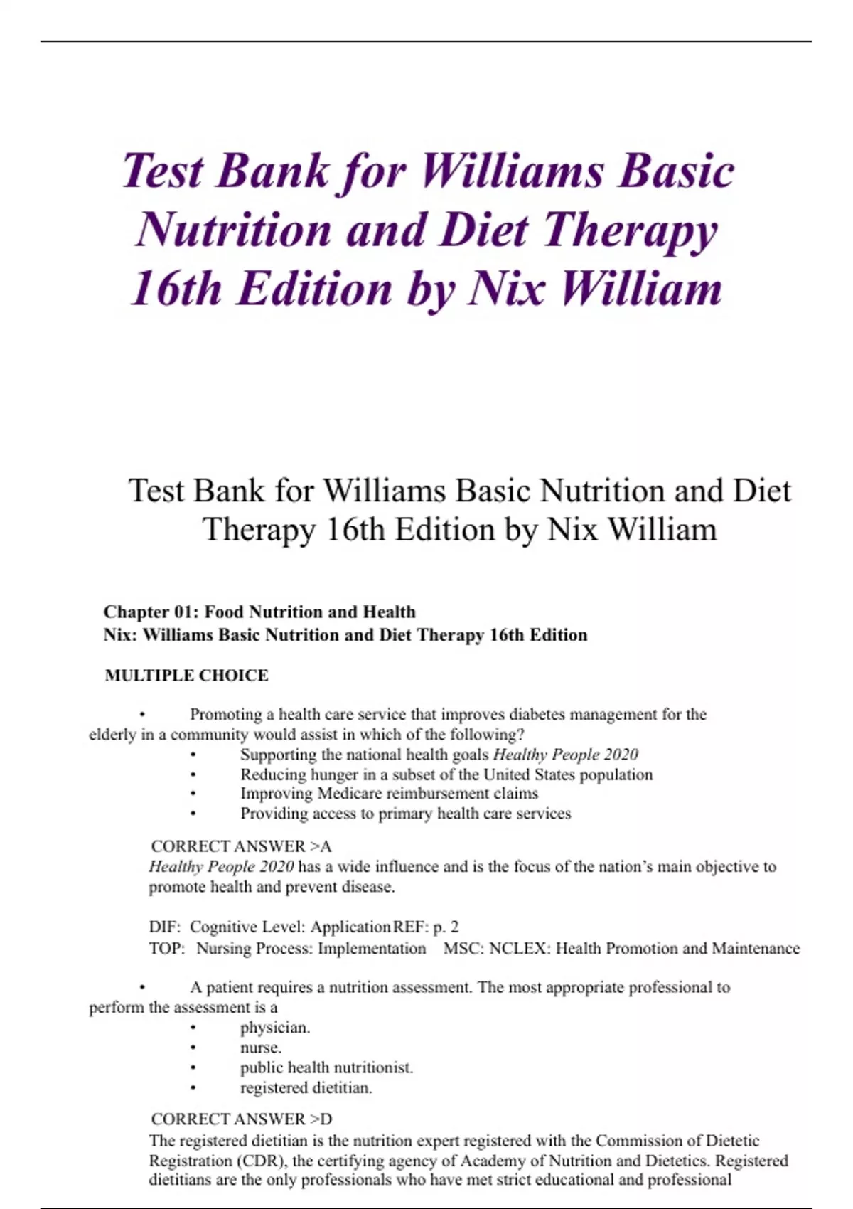Nix: Williams Basic Nutrition and Diet Therapy 16th Edition