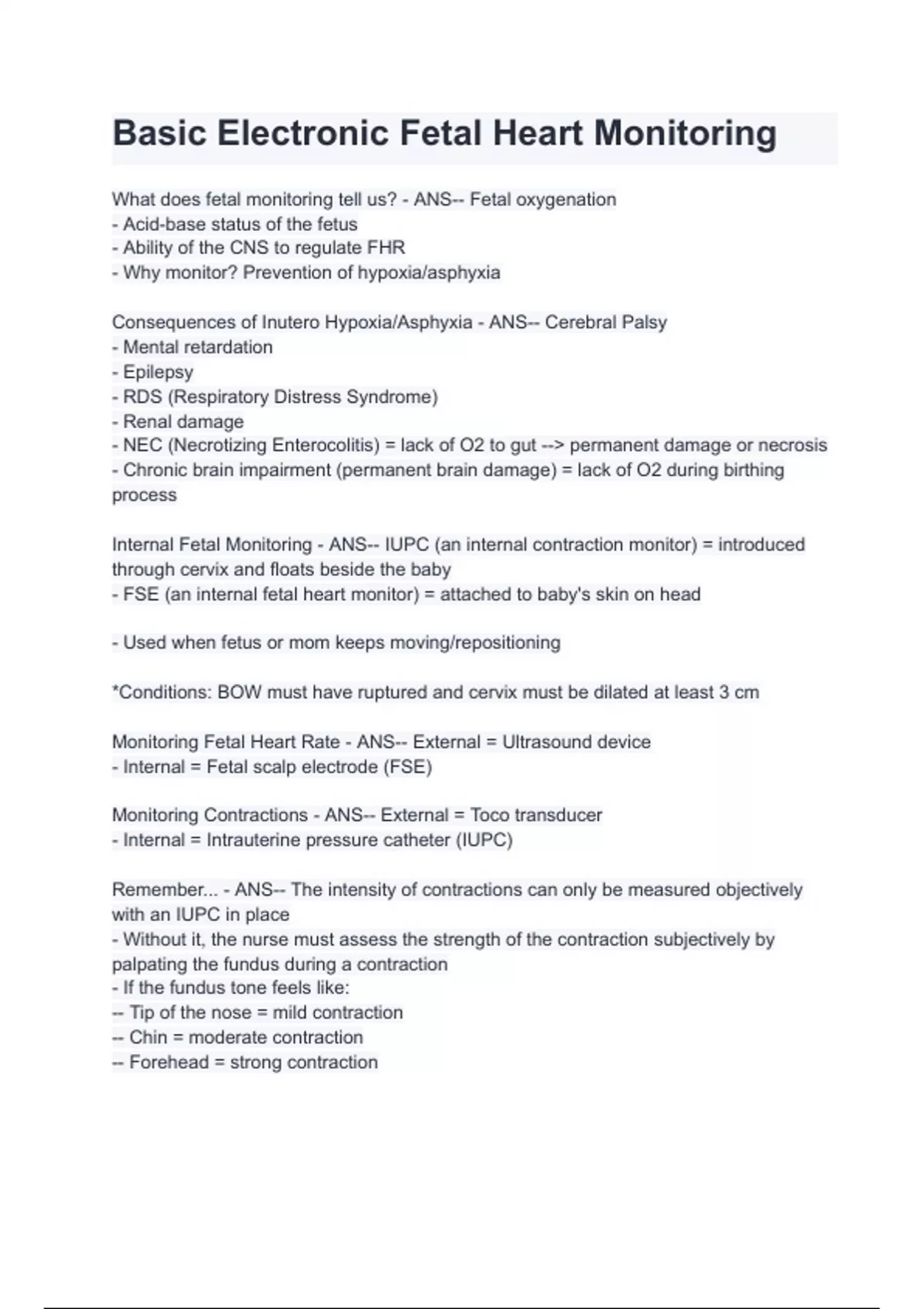 Remember... - ANS-- The intensity of contractions can only be measured objectively