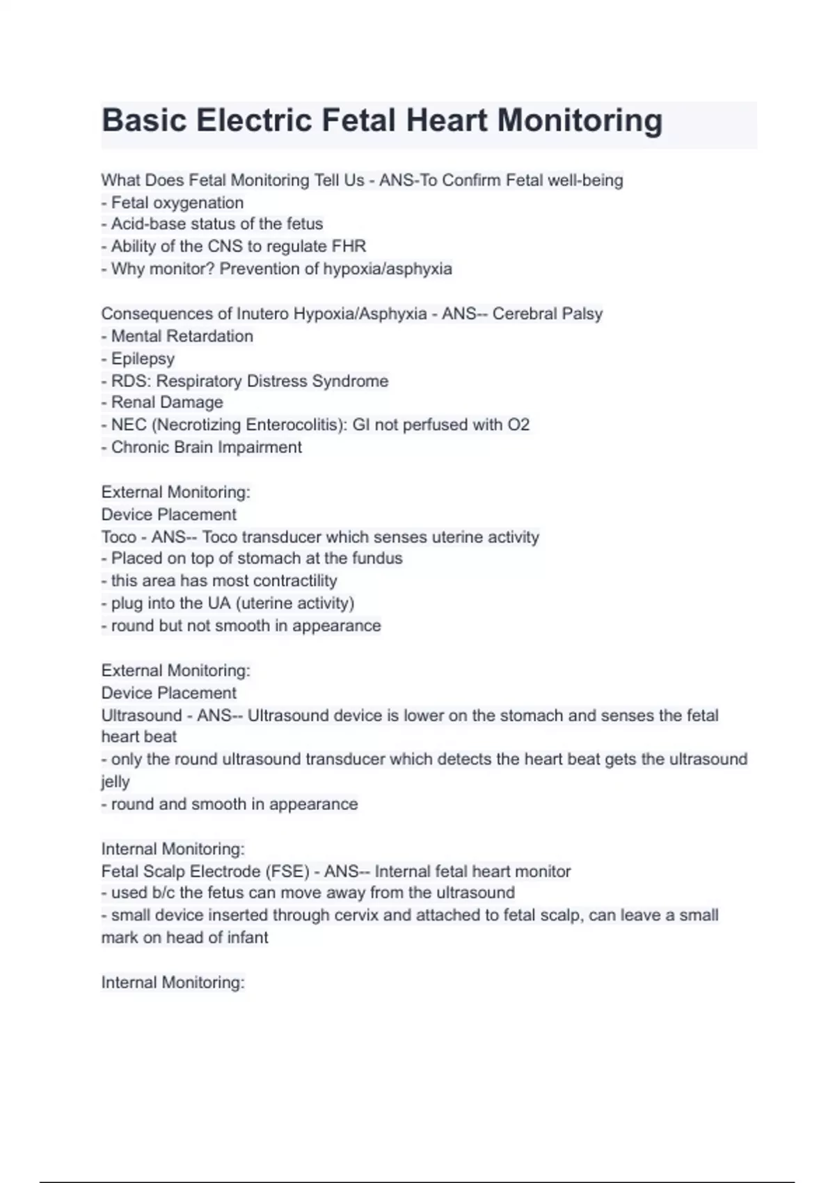 Fetal Heart Monitoring - ANS-- looks like an EKG strip