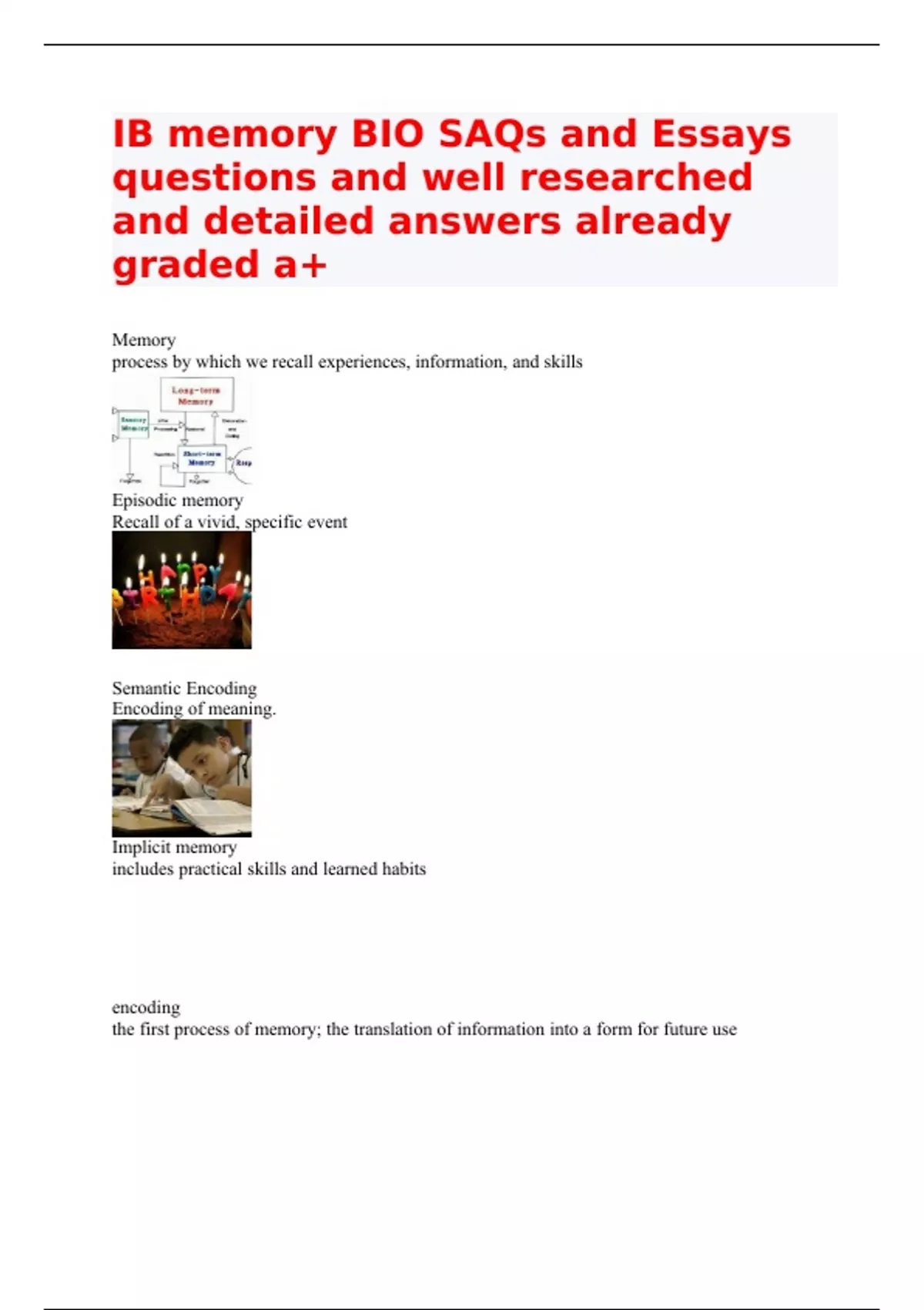 - IB memory BIO SAQs and Essay