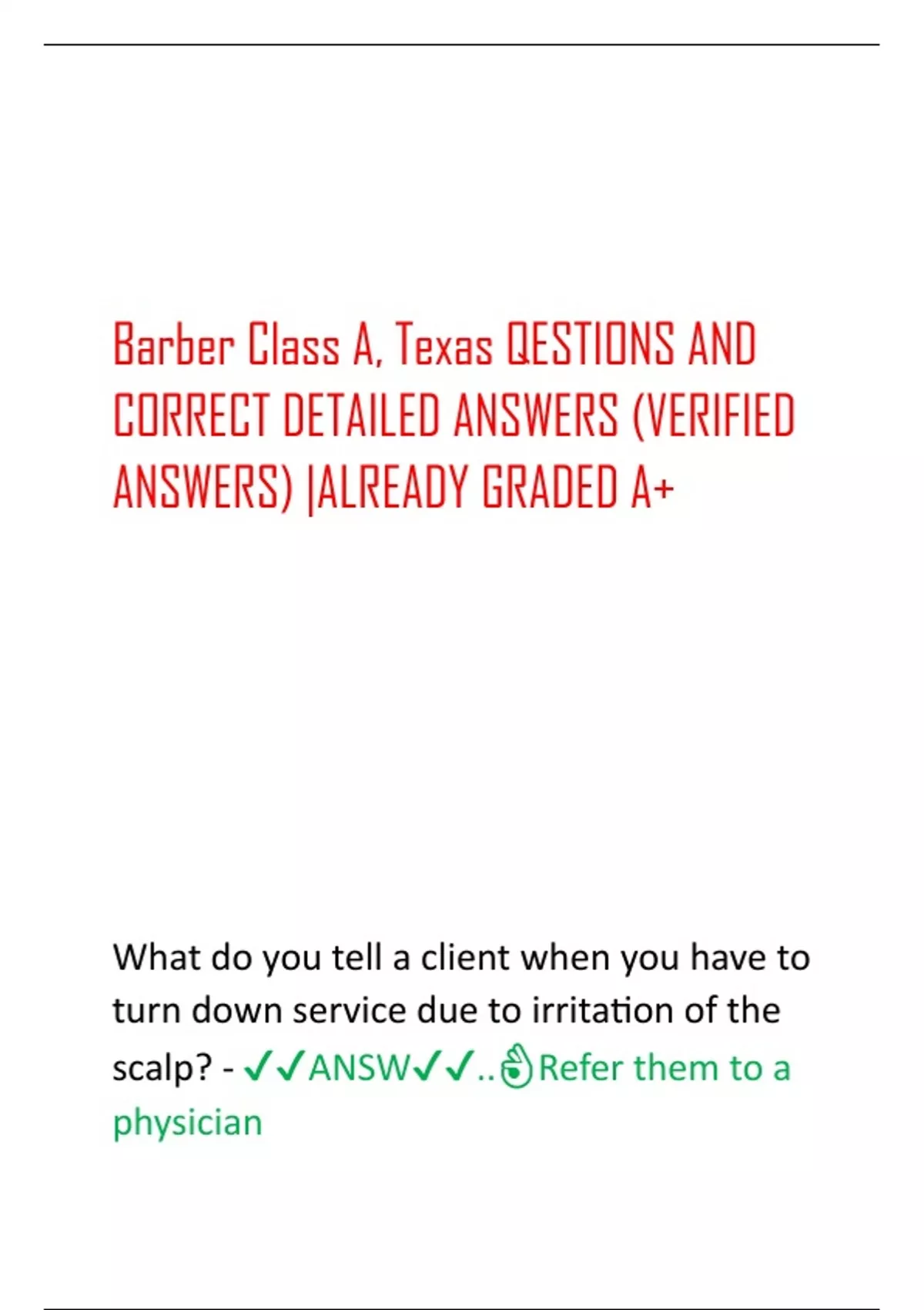 Barber Class A, Texas QESTIONS AND CORRECT DETAILED ANSWERS (VERIFIED ANSWERS) |ALREADY GRADED A+Barber Class A, Texas QESTIONS AND CORRECT DETAILED ANSWERS (VERIFIED ANSWERS) |ALREADY GRADED A+Barber Class A, Texas QESTIONS AND CORRECT DETAILED ANSWERS (VERIFIED ANSWERS) |ALREADY GRADED A+Barber Class A, Texas QESTIONS AND CORRECT DETAILED ANSWERS (VERIFIED ANSWERS) |ALREADY GRADED A+Barber Class A, Texas QESTIONS AND CORRECT DETAILED ANSWERS (VERIFIED ANSWERS) |ALREADY GRADED A+Barber Class A, Texas QESTIONS AND CORRECT DETAILED ANSWERS (VERIFIED ANSWERS) |ALREADY GRADED A+Barber Class A, Texas QESTIONS AND CORRECT DETAILED ANSWERS (VERIFIED ANSWERS) |ALREADY GRADED A+Barber Class A, Texas QESTIONS AND CORRECT DETAILED ANSWERS (VERIFIED ANSWERS) |ALREADY GRADED A+Barber Class A, Texas QESTIONS AND CORRECT DETAILED ANSWERS (VERIFIED ANSWERS) |ALREADY GRADED A+Barber Class A, Texas QESTIONS AND CORRECT DETAILED ANSWERS (VERIFIED ANSWERS) |ALREADY GRADED A+Barber Class A, Texas QESTIONS AND CORRECT DETAILED ANSWERS (VERIFIED ANSWERS) |ALREADY GRADED A+Barber Class A, Texas QESTIONS AND CORRECT DETAILED ANSWERS (VERIFIED ANSWERS) |ALREADY GRADED A+Barber Class A, Texas QESTIONS AND CORRECT DETAILED ANSWERS (VERIFIED ANSWERS) |ALREADY GRADED A+Barber Class A, Texas QESTIONS AND CORRECT DETAILED ANSWERS (VERIFIED ANSWERS) |ALREADY GRADED A+Barber Class A, Texas QESTIONS AND CORRECT DETAILED ANSWERS (VERIFIED ANSWERS) |ALREADY GRADED A+Barber Class A, Texas QESTIONS AND CORRECT DETAILED ANSWERS (VERIFIED ANSWERS) |ALREADY GRADED A+Barber Class A, Texas QESTIONS AND CORRECT DETAILED ANSWERS (VERIFIED ANSWERS) |ALREADY GRADED A+Barber Class A, Texas QESTIONS AND CORRECT DETAILED ANSWERS (VERIFIED ANSWERS) |ALREADY GRADED A+Barber Class A, Texas QESTIONS AND CORRECT DETAILED ANSWERS (VERIFIED ANSWERS) |ALREADY GRADED A+Barber Class A, Texas QESTIONS AND CORRECT DETAILED ANSWERS (VERIFIED ANSWERS) |ALREADY GRADED A+Barber Class A, Texas QESTIONS AND CORRECT DETAILED ANSWERS (VERIFIED ANSWERS) |ALREADY GRADED A+Barber Class A, Texas QESTIONS AND CORRECT DETAILED ANSWERS (VERIFIED ANSWERS) |ALREADY GRADED A+Barber Class A, Texas QESTIONS AND CORRECT DETAILED ANSWERS (VERIFIED ANSWERS) |ALREADY GRADED A+Barber Class A, Texas QESTIONS AND CORRECT DETAILED ANSWERS (VERIFIED ANSWERS) |ALREADY GRADED A+Barber Class A, Texas QESTIONS AND CORRECT DETAILED ANSWERS (VERIFIED ANSWERS) |ALREADY GRADED A+Barber Class A, Texas QESTIONS AND CORRECT DETAILED ANSWERS (VERIFIED ANSWERS) |ALREADY GRADED A+