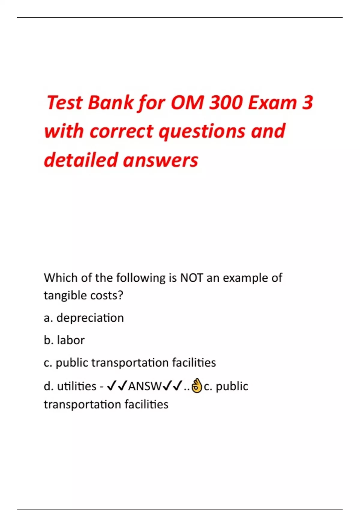 Test Bank for OM 300 Exam 3 with correct questions and detailed answers