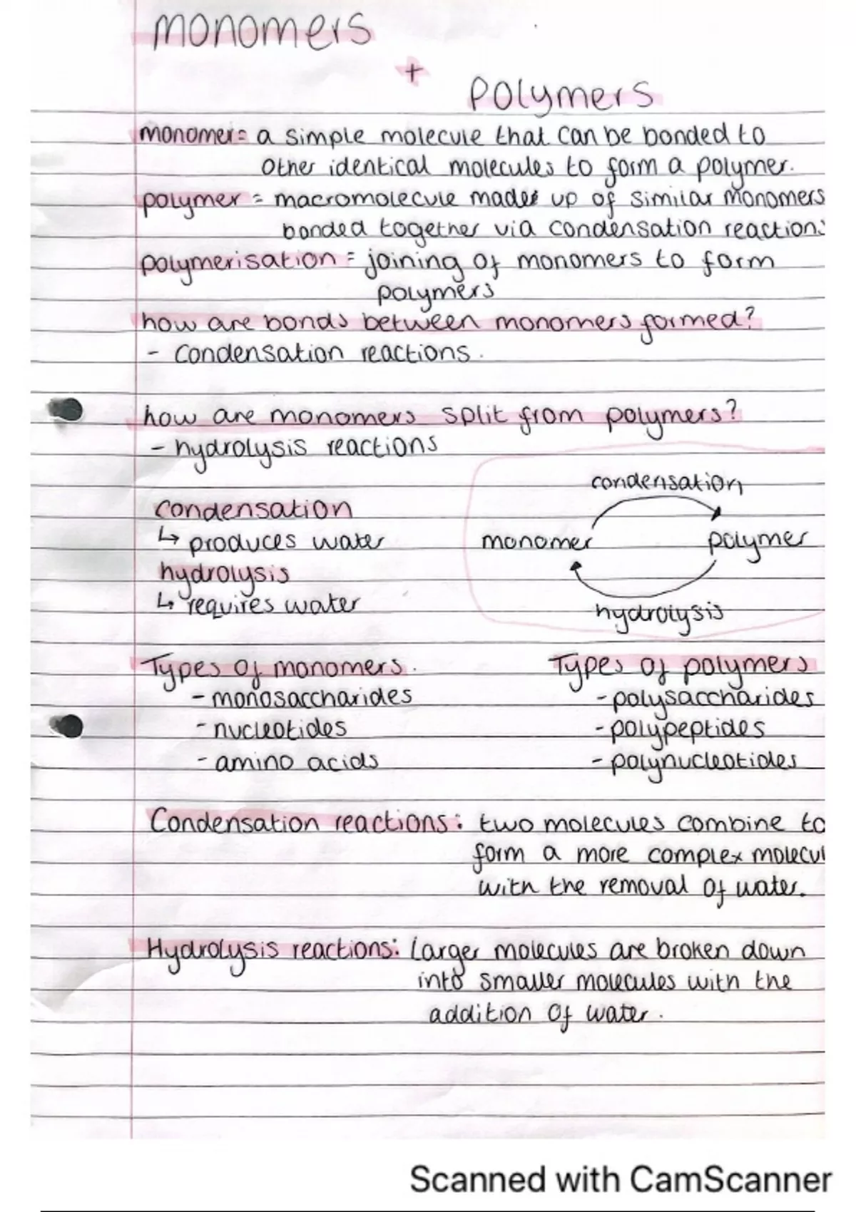 Diagrams, graphs, notes and definitions for unit 1 of biology - biological molecules