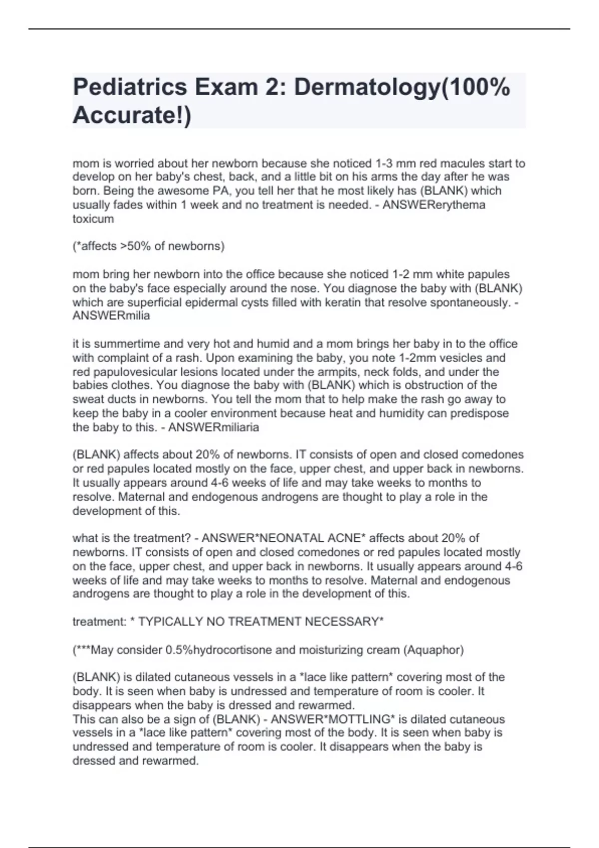 Pediatrics Exam 2: Dermatology(100% Accurate!)