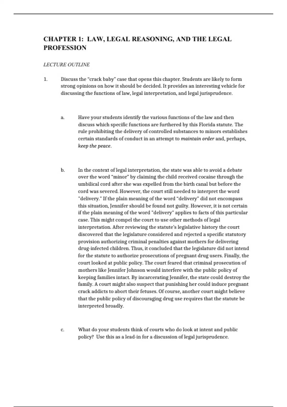 1. Discuss the “crack baby” case that opens this chapter. Students are likely to form