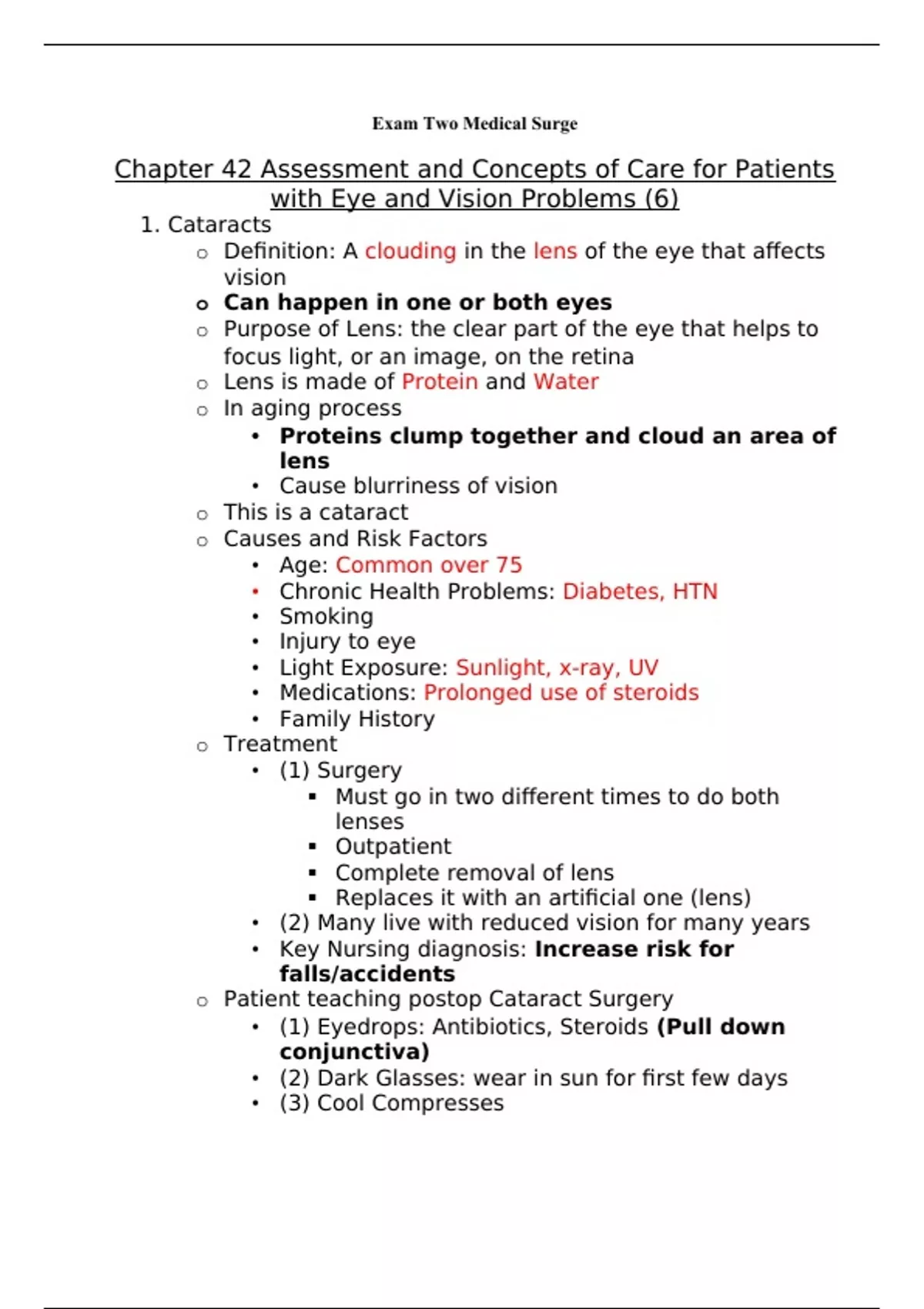 This document is an informative study guide to help prepare for exam two in medical surge nursing 2. This study guide highlights and bolds important information for exam two to focus on.
