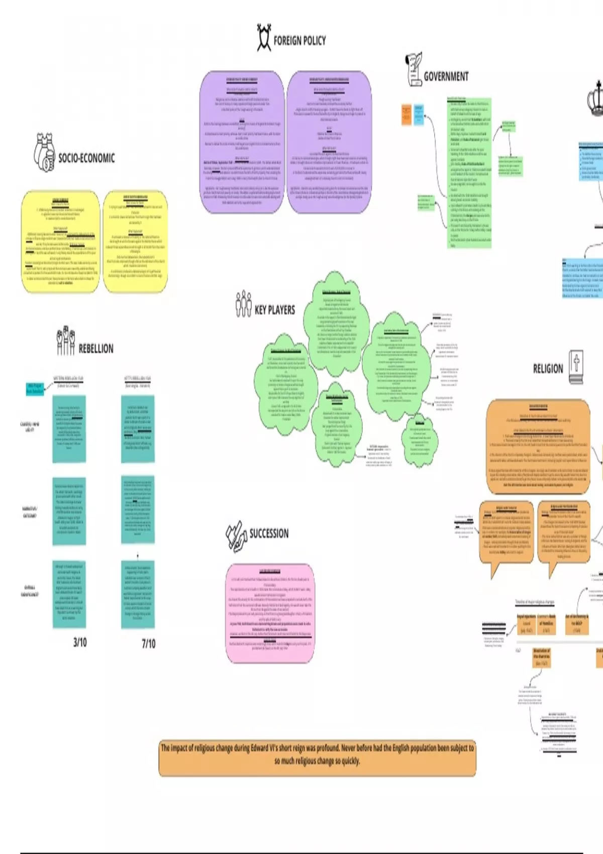 Mind maps covering the themes of Accession, succession, character and aims, foreign policy, society, economy, rebellion, government, religion, key players, and culture.