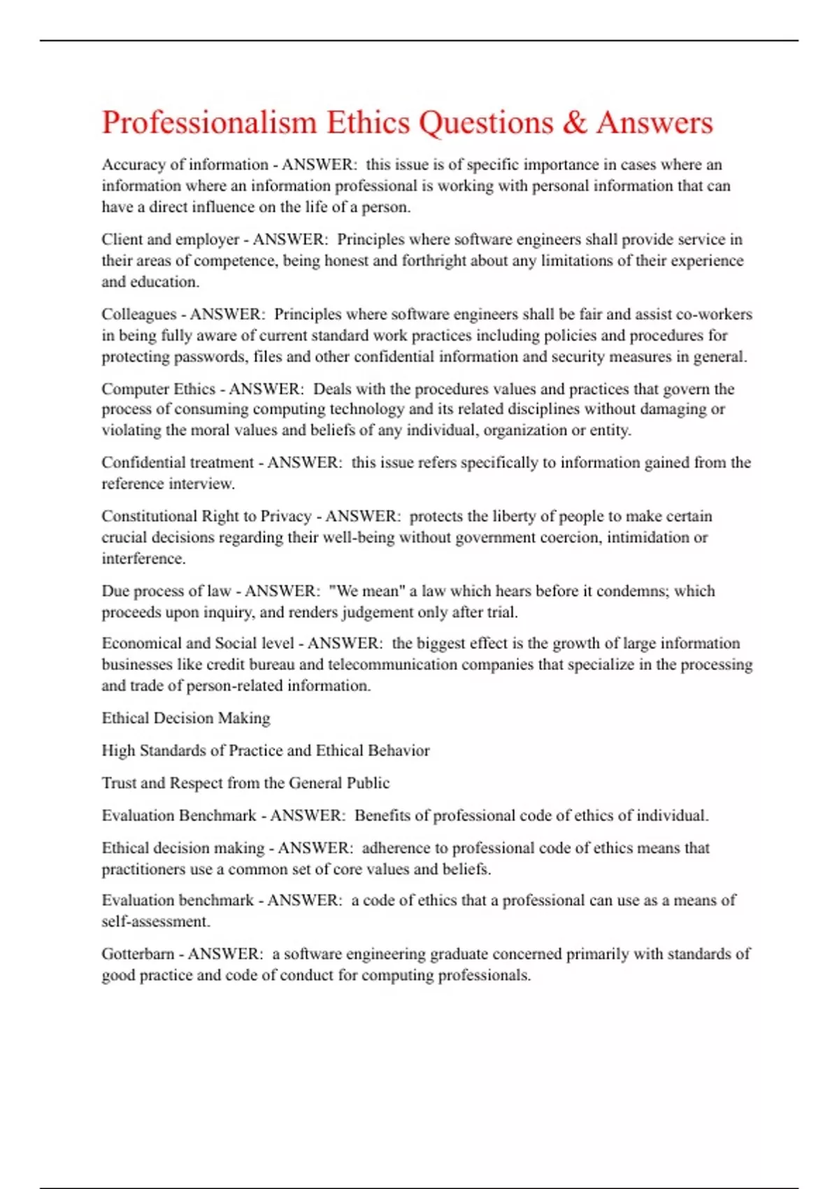 Professionalism & Ethics Questions & Answers