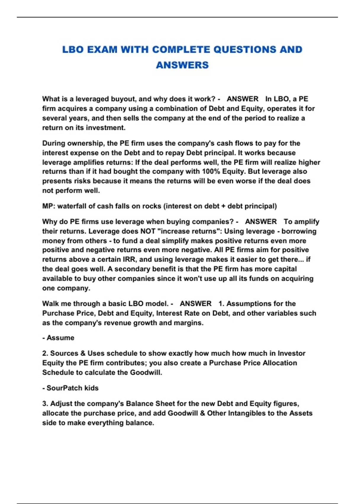 What is a leveraged buyout, and why does it work? - ANSWER In LBO, a PE