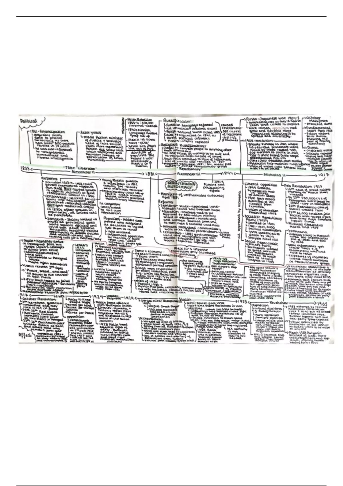 In depth mindmaps of the political, social and economic specific detail of Russian history between