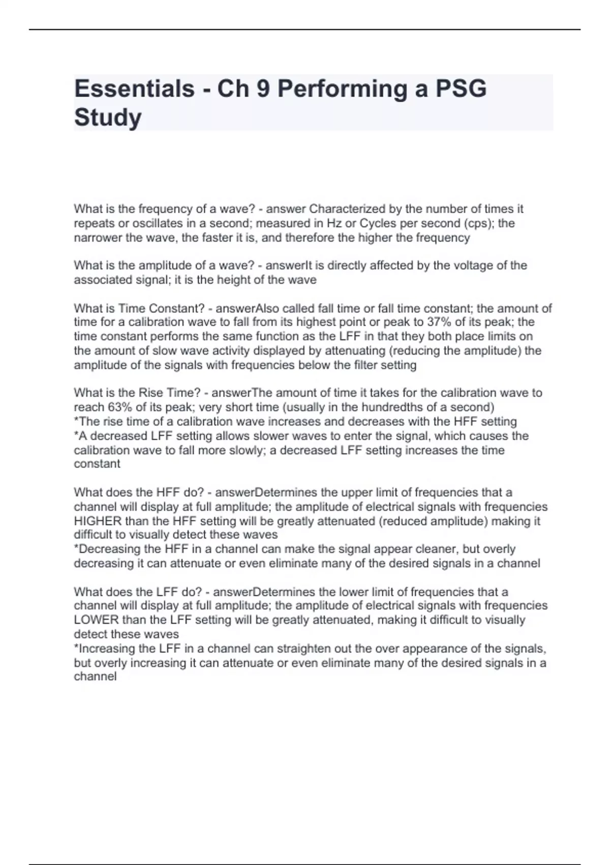 Essentials - Ch 9 Performing a PSG Study Questions and Answers 100% Accurate