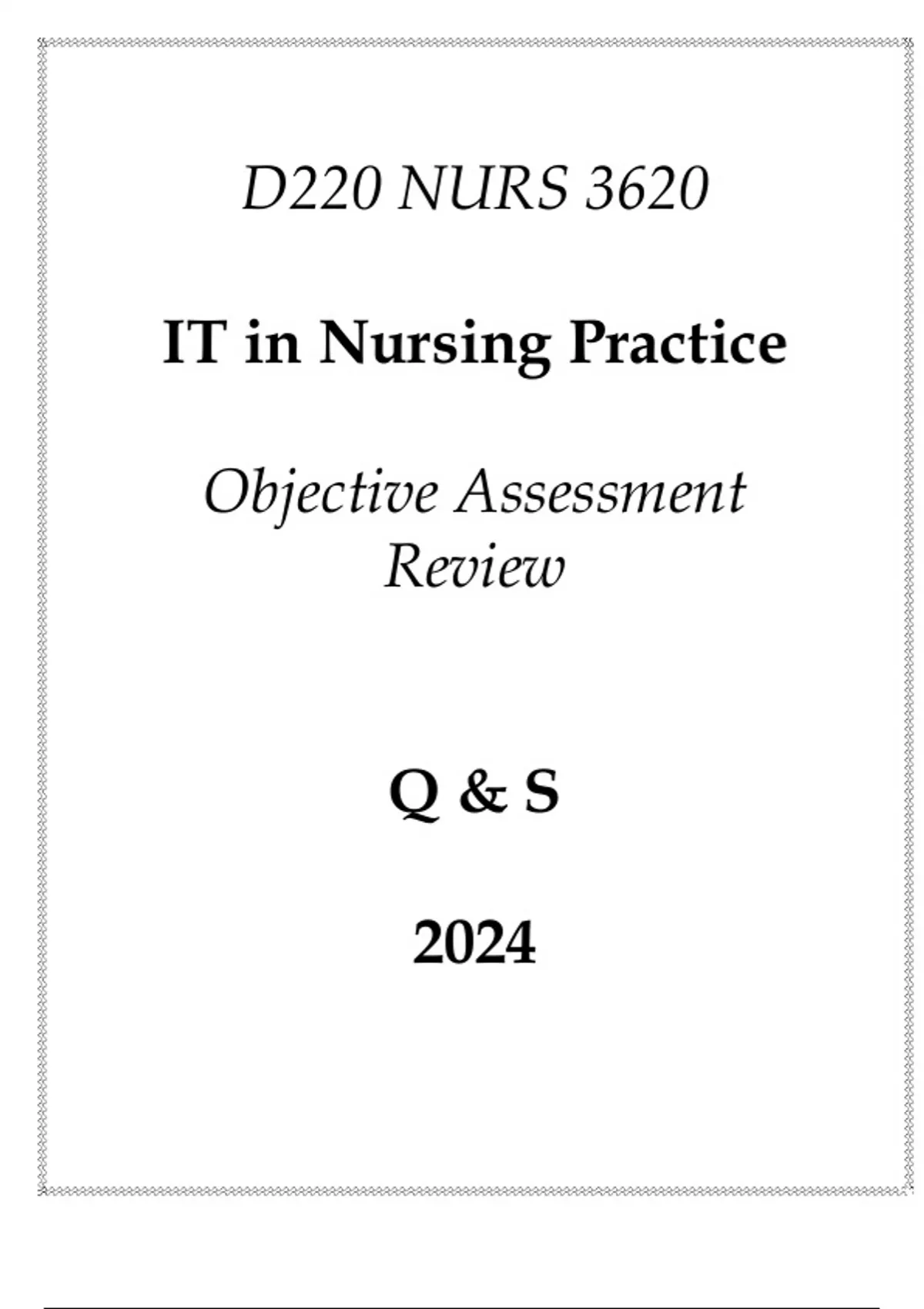 (WGU D220) NURS 3620 IT in Nursing Practice Objective Assessment Review Q & S 2024.(WGU D220) NURS 3620 IT in Nursing Practice Objective Assessment Review Q & S 2024.(WGU D220) NURS 3620 IT in Nursing Practice Objective Assessment Review Q & S 2024.